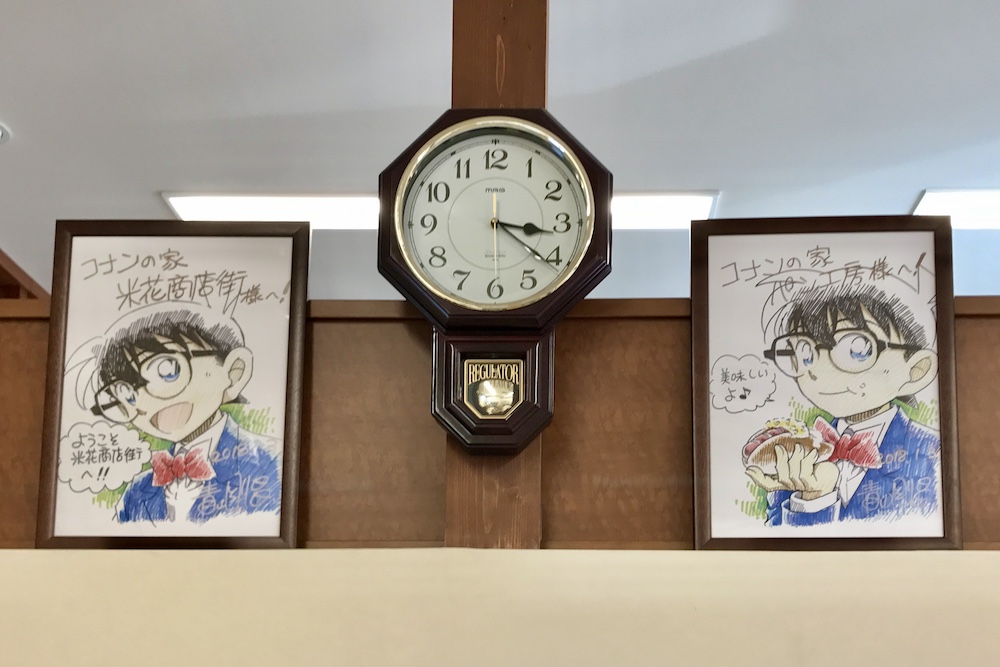 店内には青山先生のイラストが飾られていました!ポアロのエプロンコナンくん可愛い〜