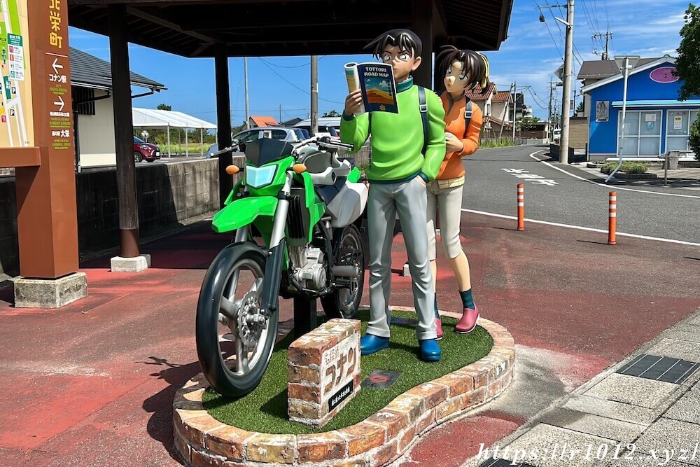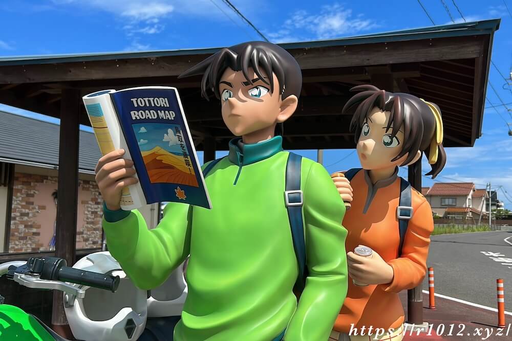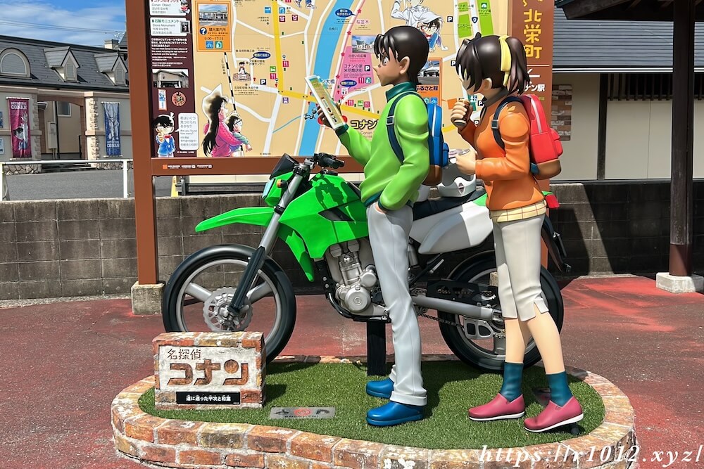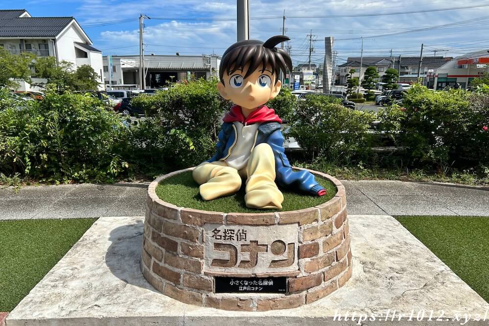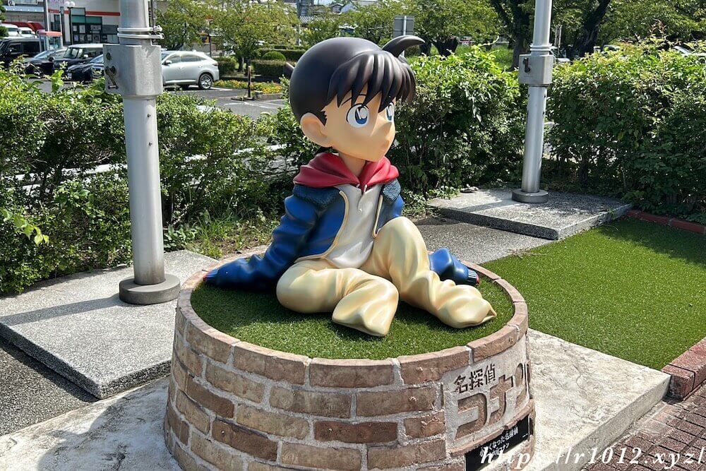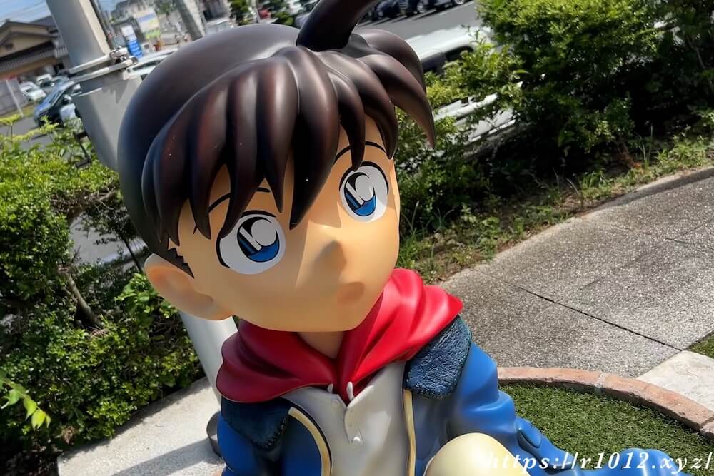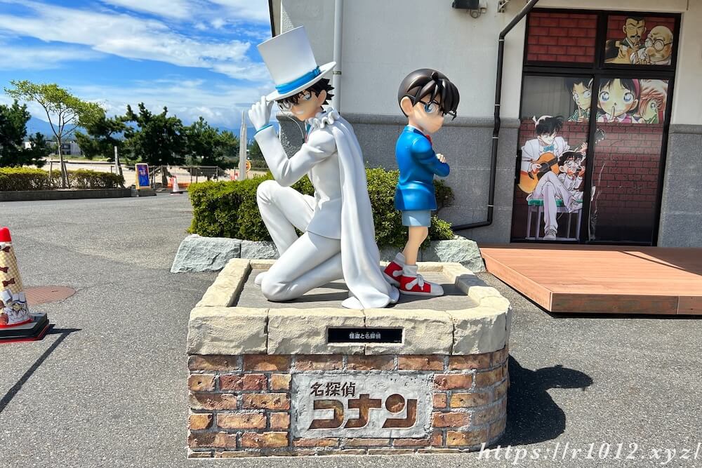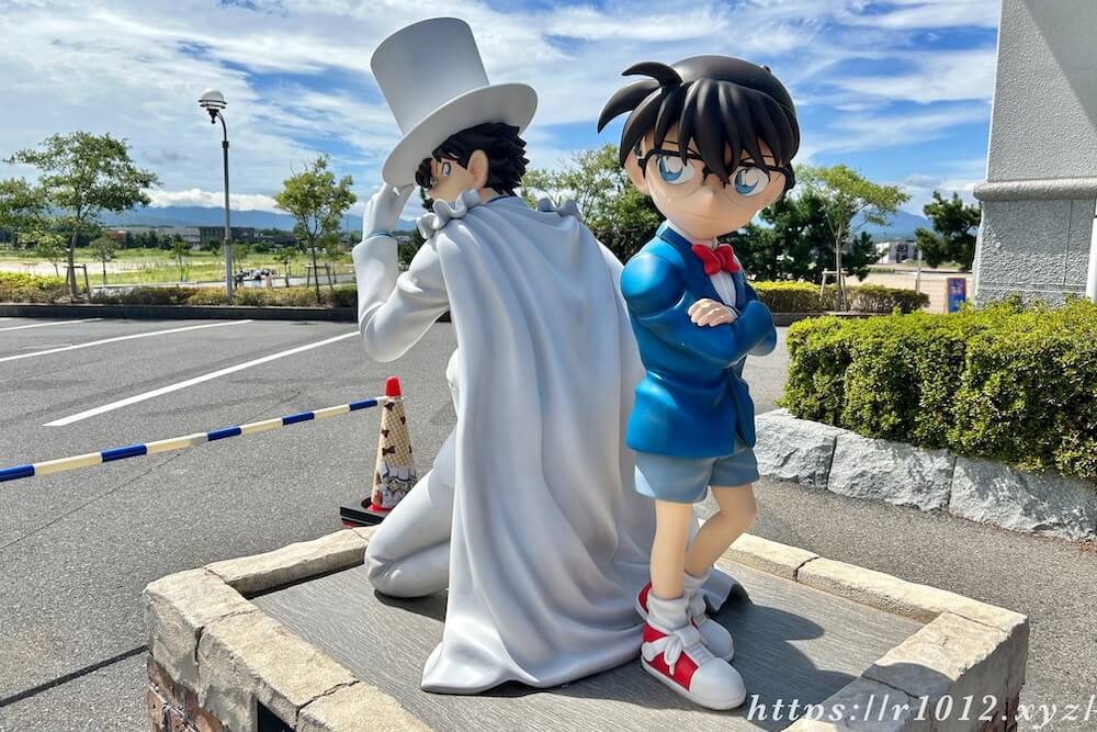 2020年にふるさと館の前に登場したコナンくんとキッドのカラーオブジェ。