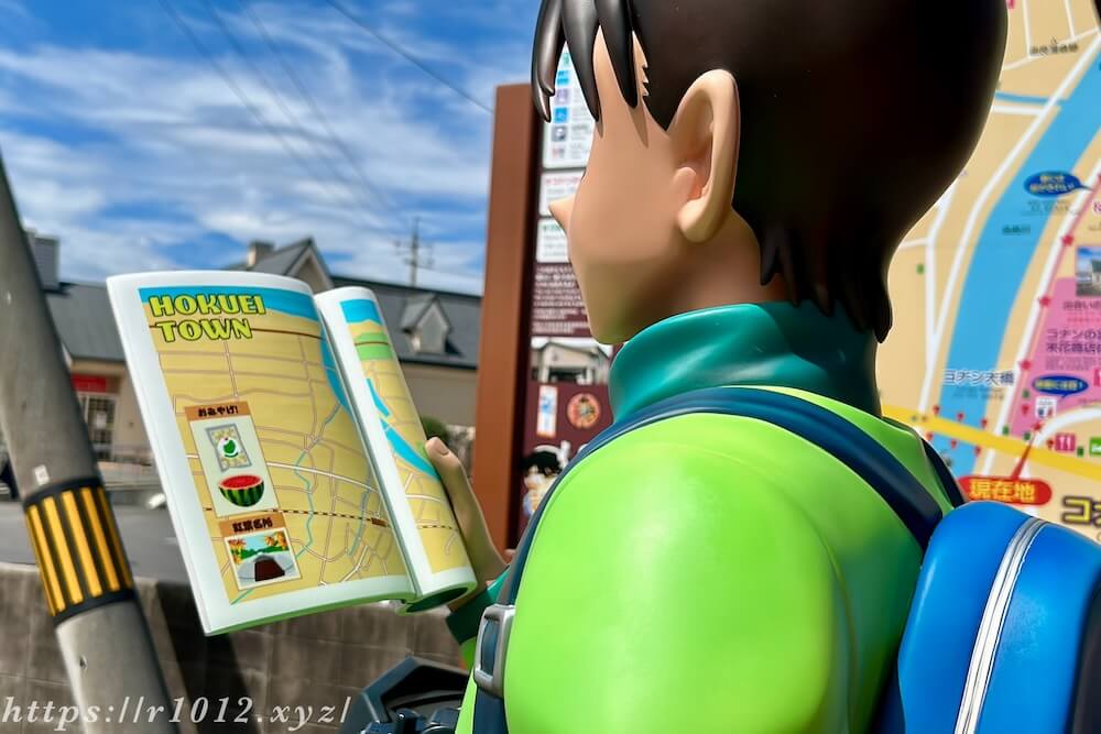 4年ぶりのコナンのまちだったんですけどもっといろいろ変わっています。コナン駅の内装もリニューアルされていたり、コナン列車も新しいラッピングに変わったり、コナン通りの看板や路面シートも変わっていましたね。