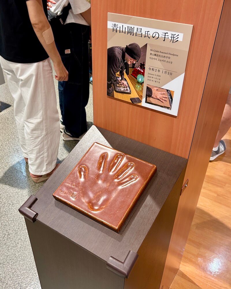 ふるさと館の壁にあった青山先生のおめでとうコメントとイラストが15周年のものに変わっていました。