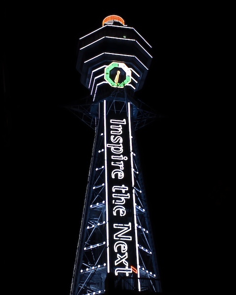 〈世紀末の魔術師〉で平次に教えてもらった光の天気予報は近くからだと見えづらいですけど上の方が赤く光ってますね、明日は曇り予報だったのかな?