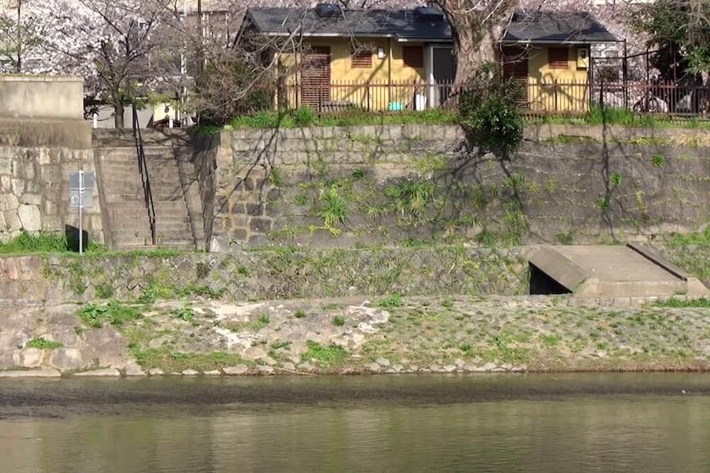 コナンくんと平次が降りた階段を川を挟んだ岸から見てみました。やっぱりここいいですよね。2人が出会って京都のあちこちに行くシーンが映画であるので自分自身の旅の始まりもここに来がちですね。