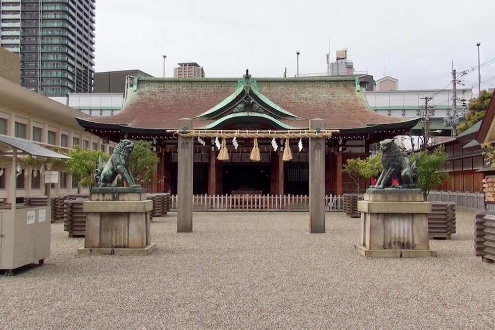〈世紀末の魔術師〉で平次たちがおみくじを引いていた神社のモデルになったところです。劇中では「難波布袋神社」の名前で登場しています。