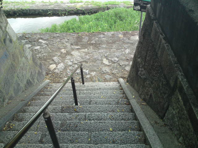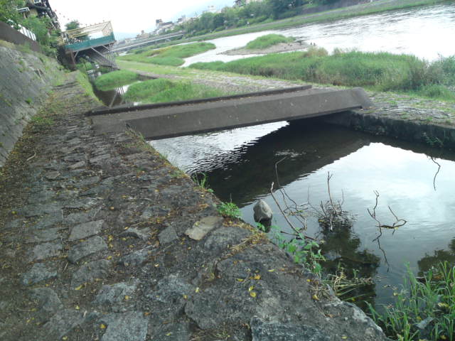 橋の脇から鴨川に降りれました。これも実在してたのかー!!平次とコナンくんが見えますね。感動の写真ですよこれは!!