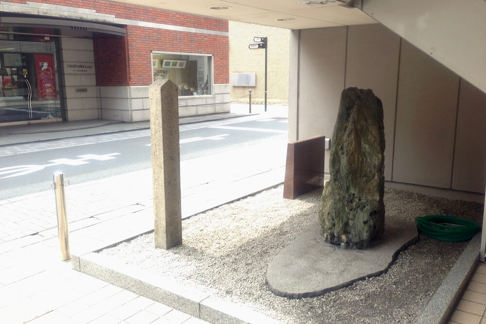 本当にあった!まじでビルの前にドンと石が置かれてるんですね、へぇ。