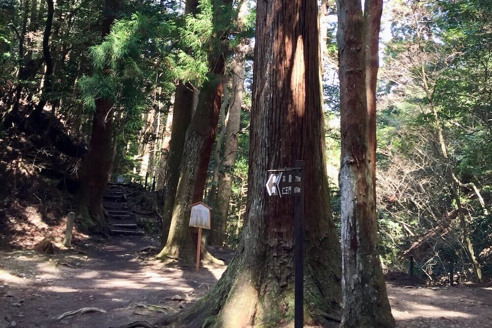 平次が犯人に狙われた場所。でっかい杉がさくさんあります。