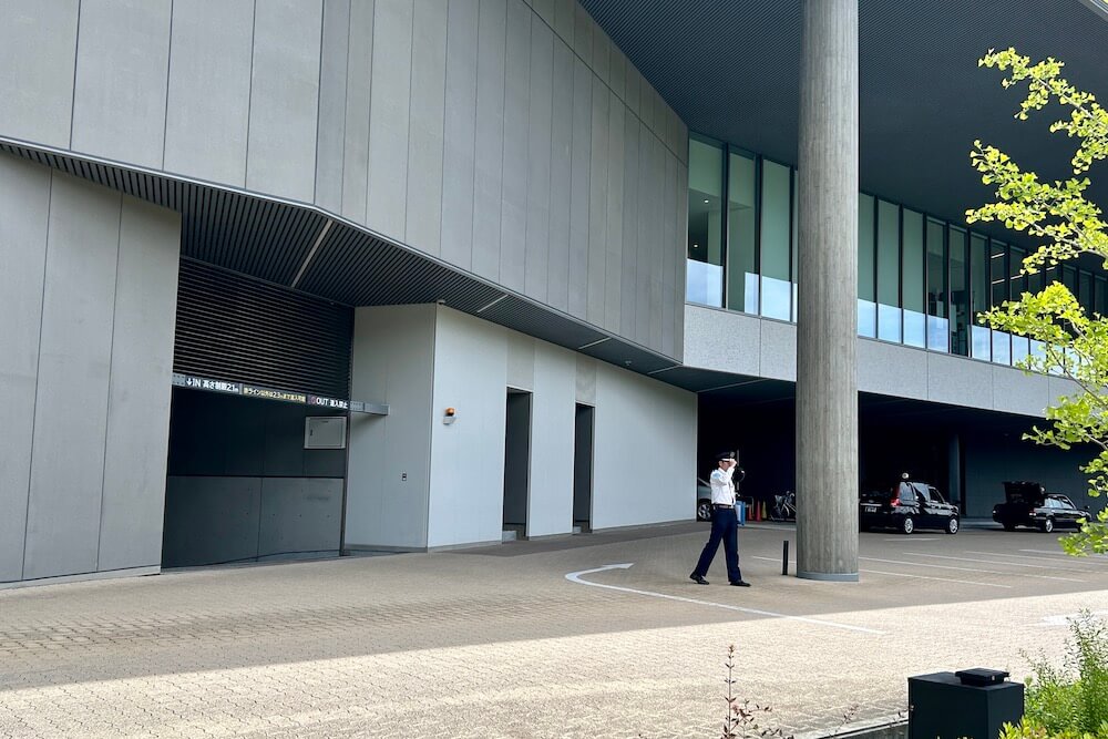 犯人の1人、高内が車で逃走を図った読売テレビ地下駐車場の出口です。