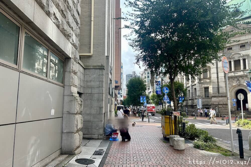 コナンと平次が車の行く先を見ていたのが手前の歩道で奥の通りには占い師のおばさんがいました。