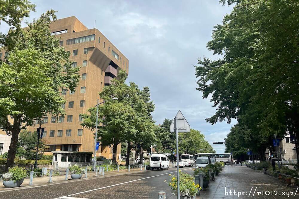 通りに入ったコナンの後ろに映った凸っとしてる建物は『横浜地方検察庁』です。