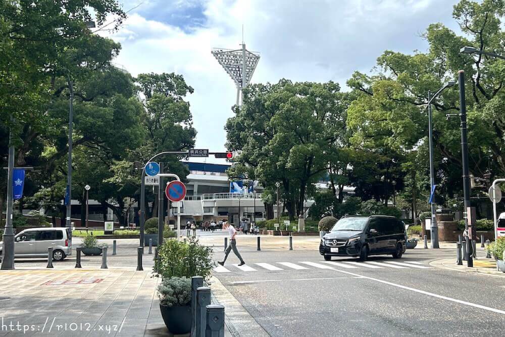 最後にコナンが右折した信号の奥に映るのは『横浜スタジアム』の照明です。