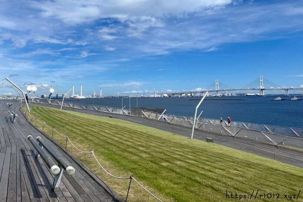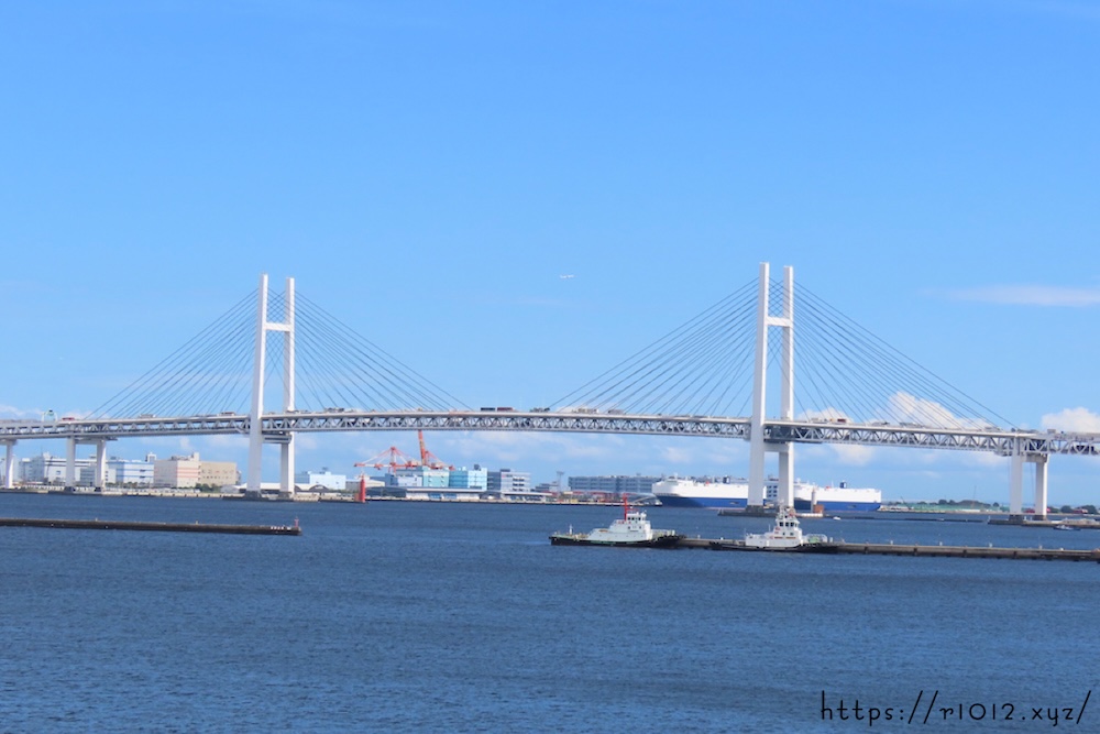横浜港が見渡せる場所で『横浜ベイブリッジ』も見えます。