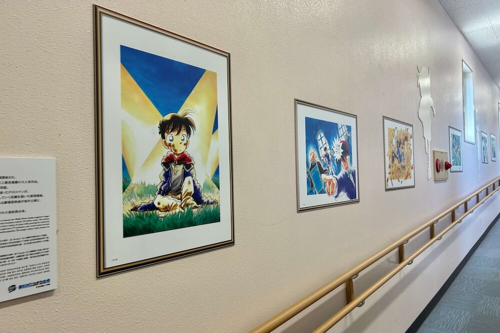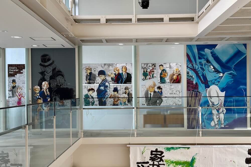 吹き抜け2階部分の壁にはコナンキャラクターたちが勢揃い!
