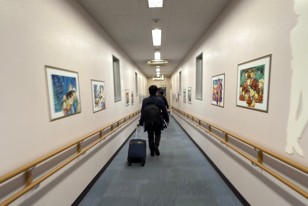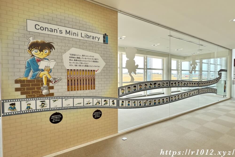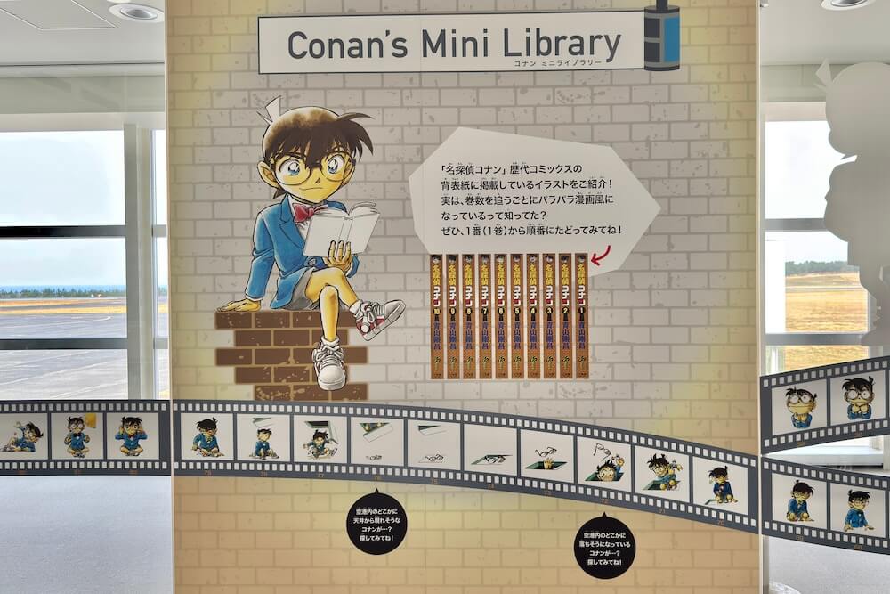 飛行機への搭乗橋にはコナンの複製原画が並んでいます。