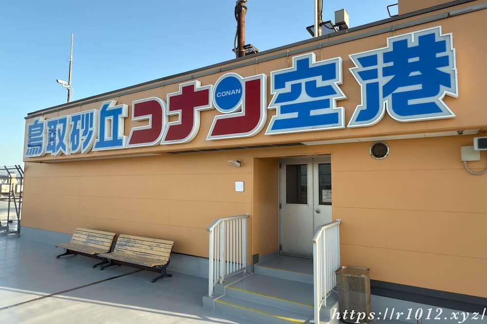 屋外から見ることができる鳥取砂丘コナン空港のファサードサインです。