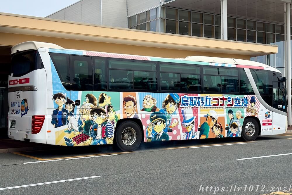 空港発着の連絡バスはコナンのラッピングが施されています。