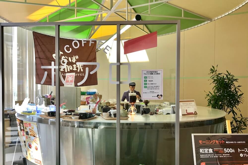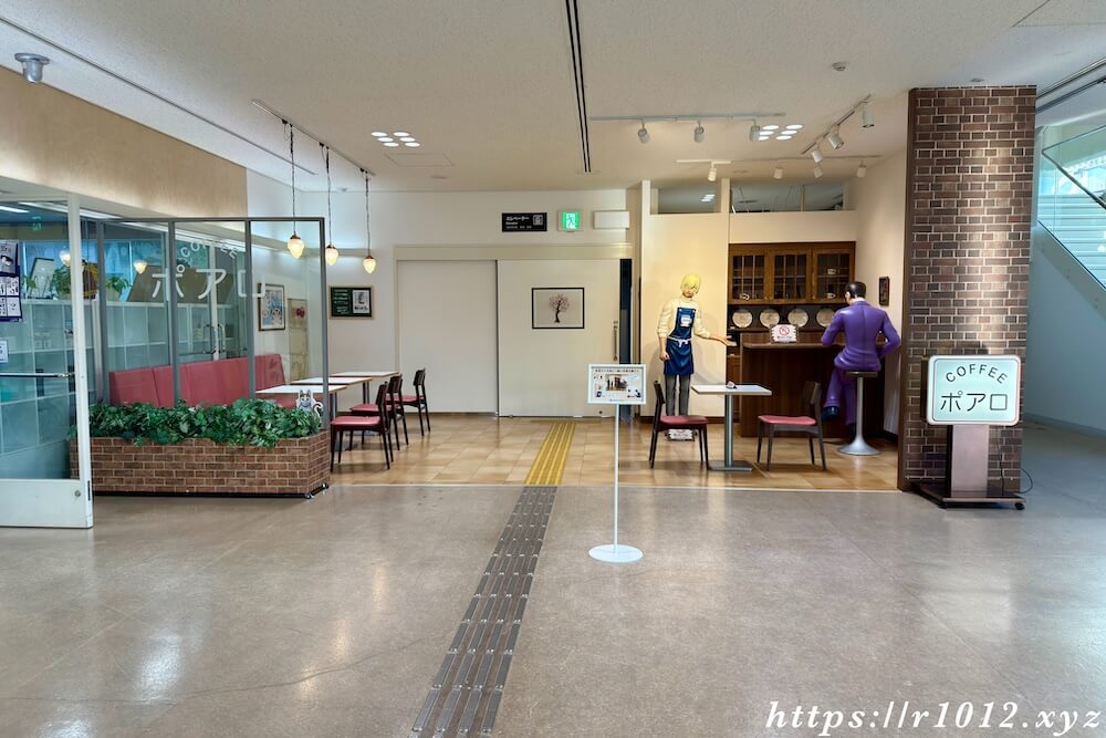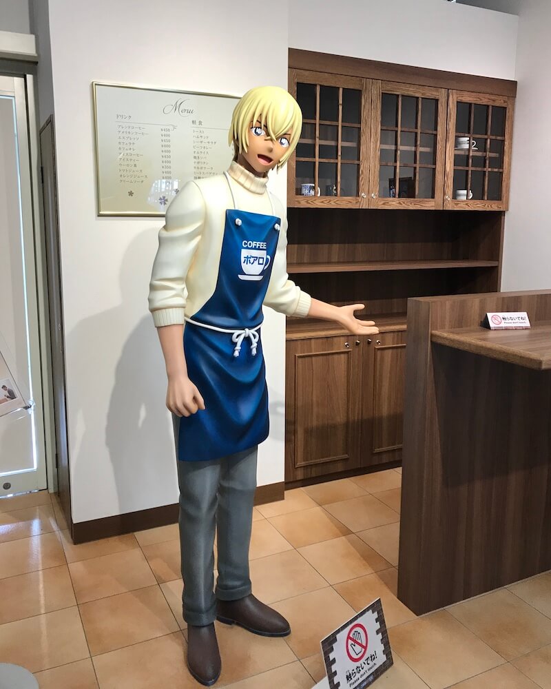 1階コナン探偵社のショップ前にある喫茶ポアロは実際の喫茶店ではなくコナンフォトスポットです。2018年に安室さんのオブジェとともに誕生しました。