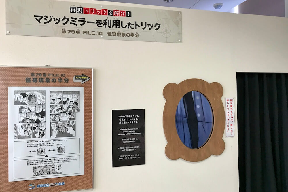 コナンホール1階奥側には2015年のリニューアルで原作にあるトリックを体験できるコーナーが設置されました。