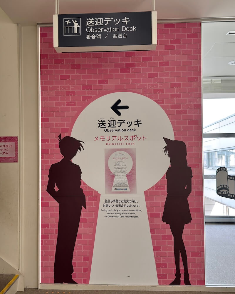 国内線ターミナル側の送迎デッキにはコナン空港の愛称サインがあります。
