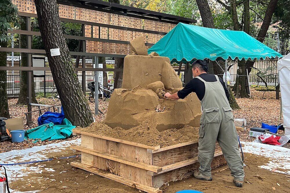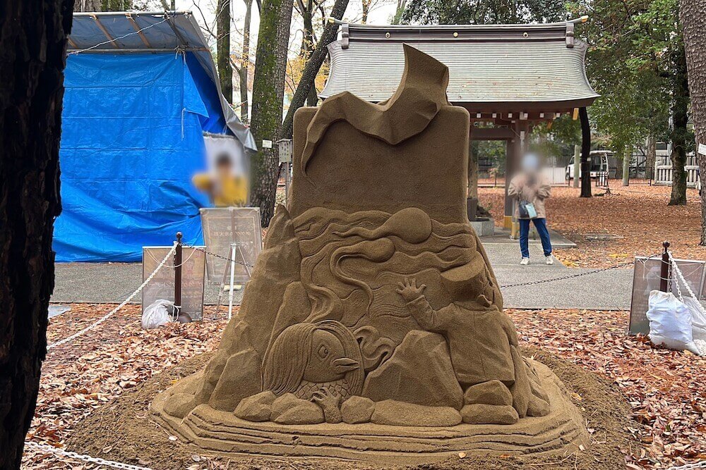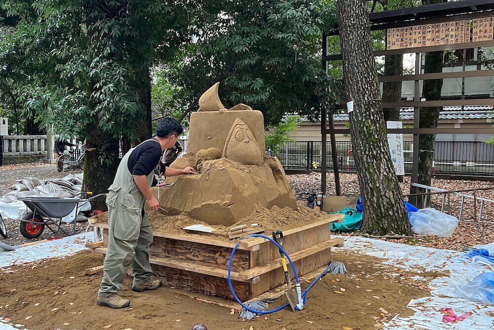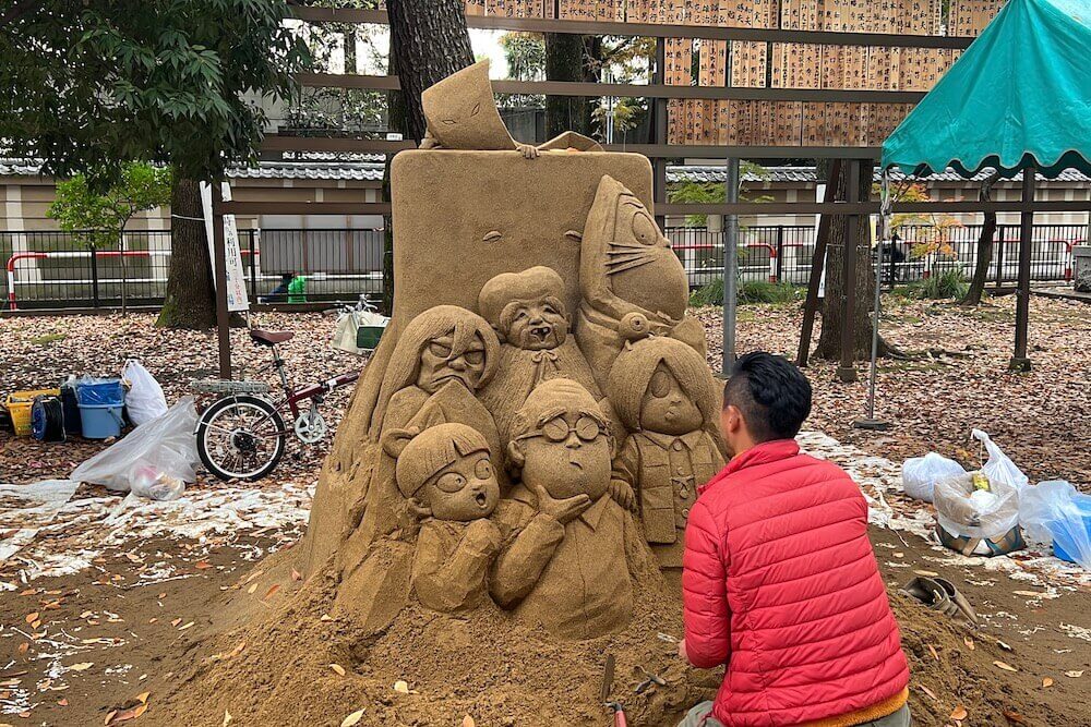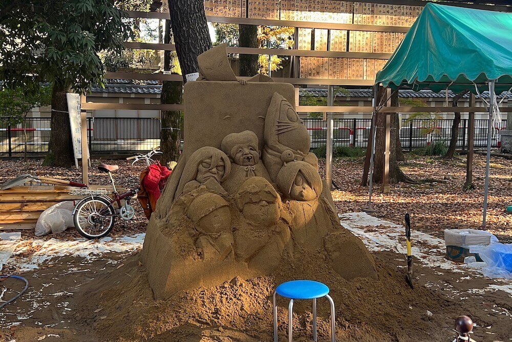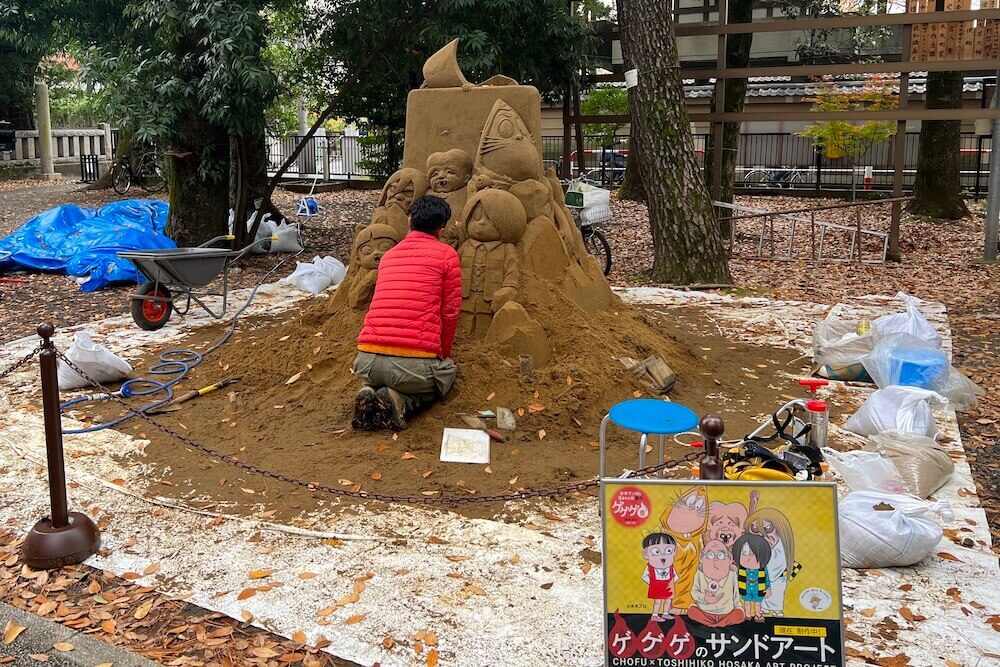調布の布多天神社境内にて制作された『砂像 ゲゲゲの鬼太郎』はゲゲゲ忌のイベントの一環で調布ゆかりのアーティスト保坂俊彦さんによって作られました。