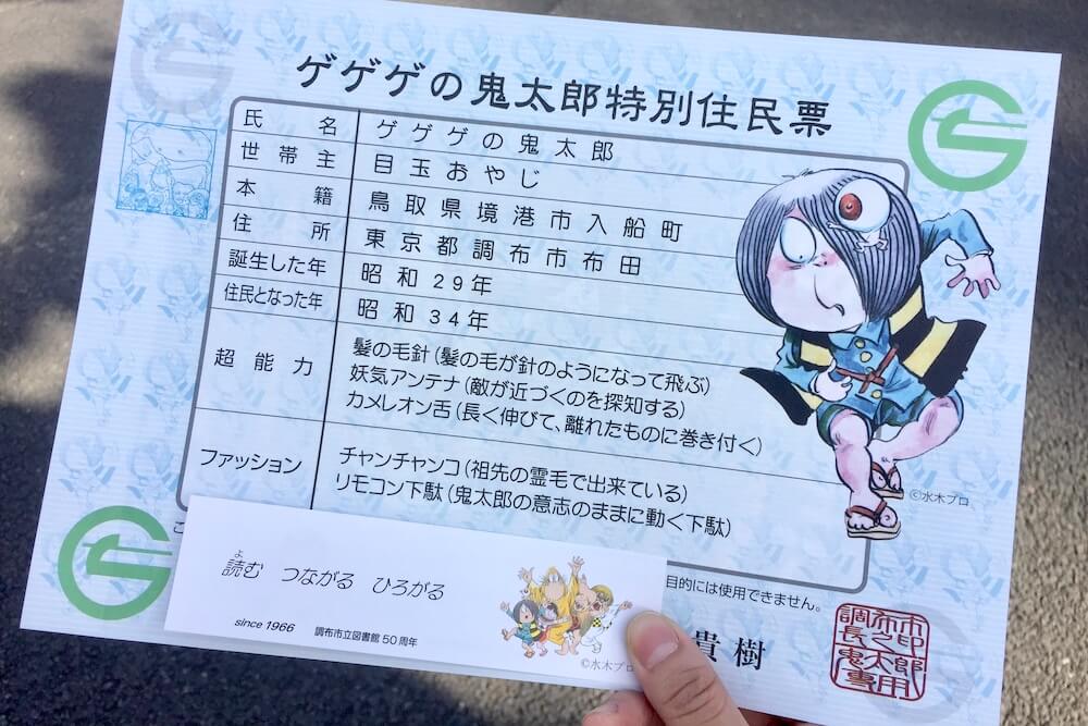 30日には“特別記念品”として鬼太郎の住民票と調布市立図書館の栞も貰えました。