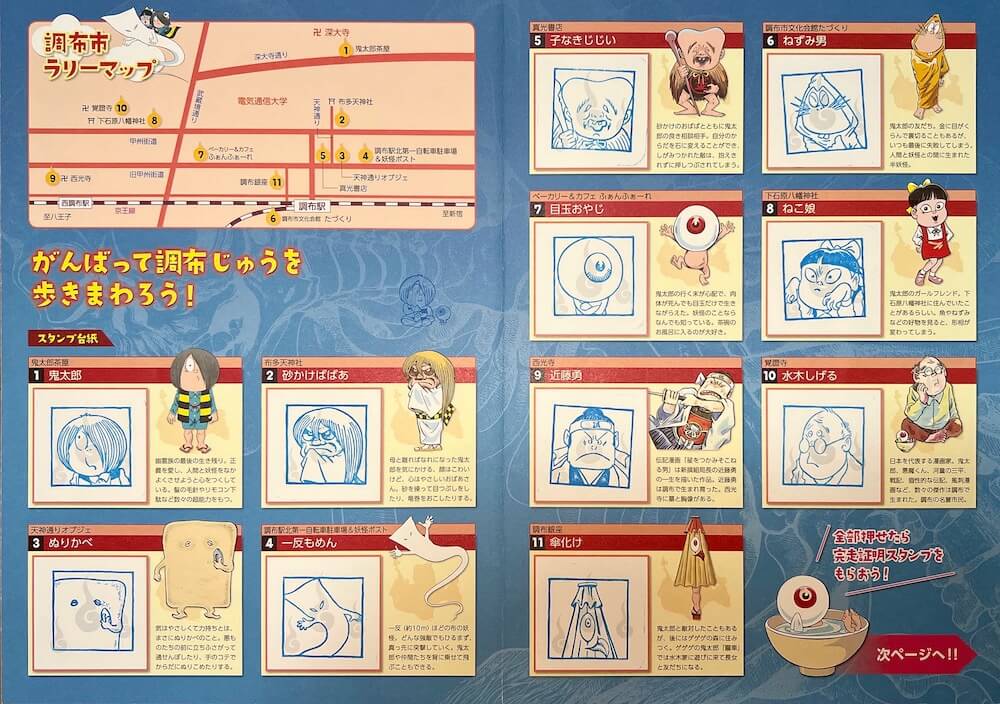 水木さんゆかりの地(11ヶ所)を周遊するスタンプラリー。調布駅から深大寺、西調布の方までけっこう広い範囲でやりがいがありますね!