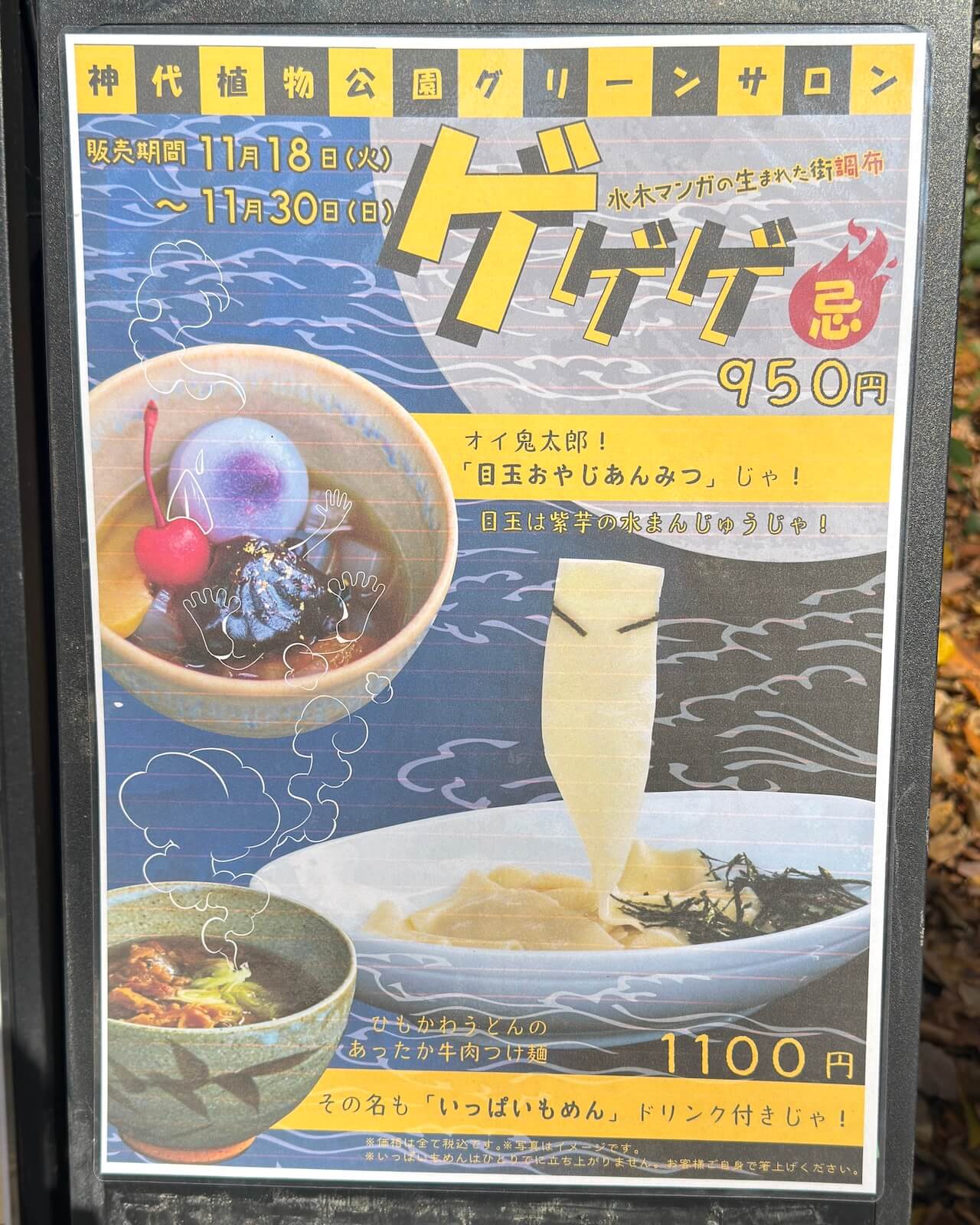 ゲゲゲ忌協力店舗が市内で様々なコラボを実施しているうちのひとつ、「神代植物公園」のカフェへ行ってきました。