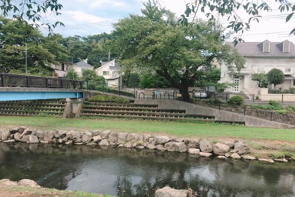 逃げ出したきららを見つけた場所。調布の野川に架かる小さな橋付近です。川岸に降りるための道も同じくあります。