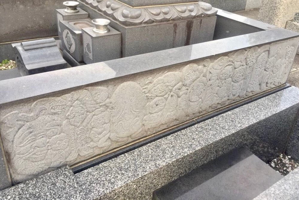 死んだ後の行き場がない・・・つまり墓がない。ニューギニアで小型機が墜落しかけたことをきっかけにそのようなことを考え、日本に帰国後すぐに墓の建設を思い立ったそうです。自宅の近くにあった覚證寺に相談をし、紹介された石工が彫刻が得意だったため水木さんは妖怪たちの彫刻を注文。その際に墓中央を巨大な目玉にしようとしましたが妻の布枝さんに却下されたそうです。水木さんはこの時の石工のことを「日本のミケランゼロ」と呼んだそうです。