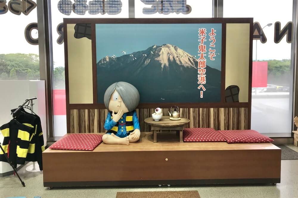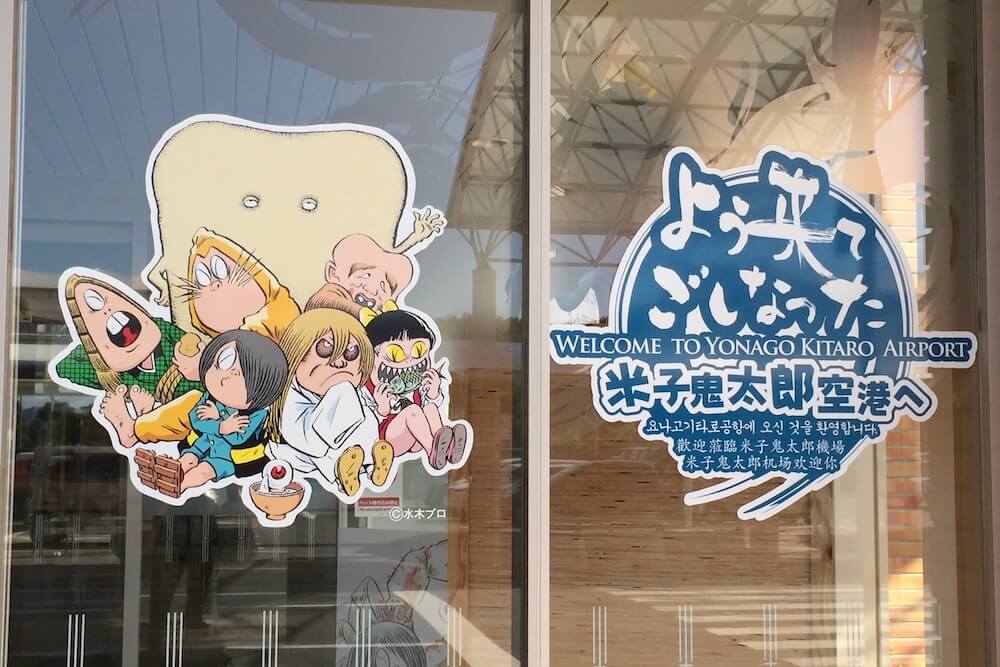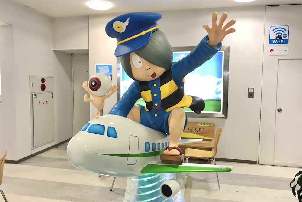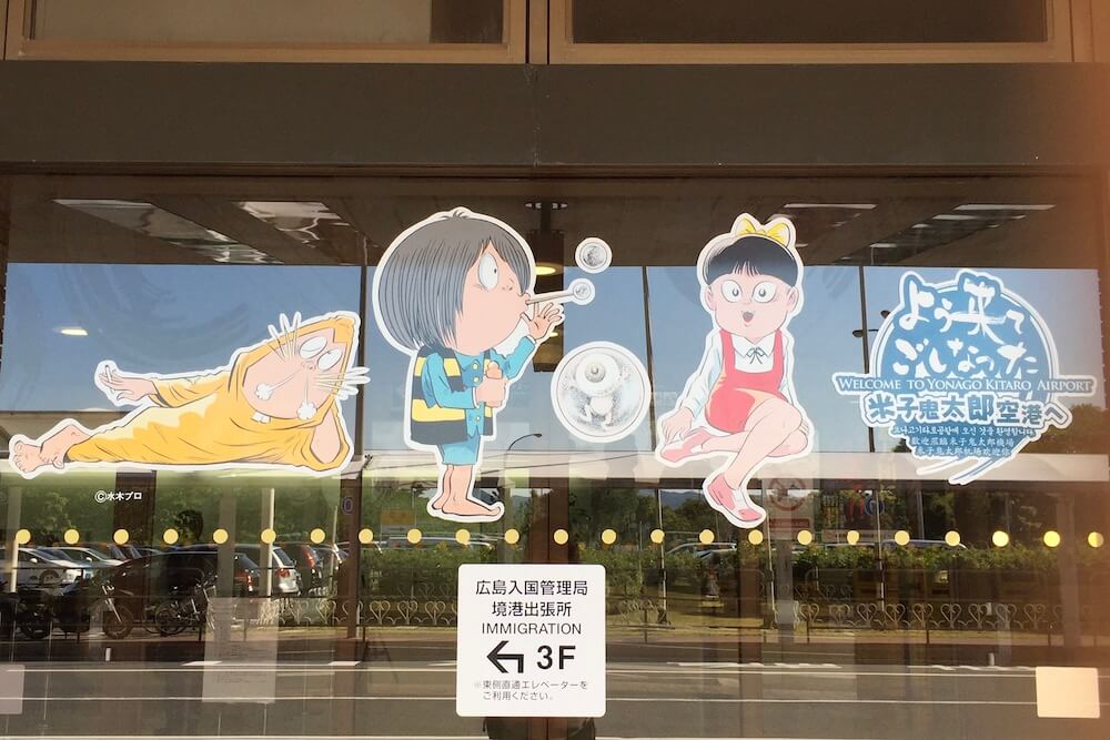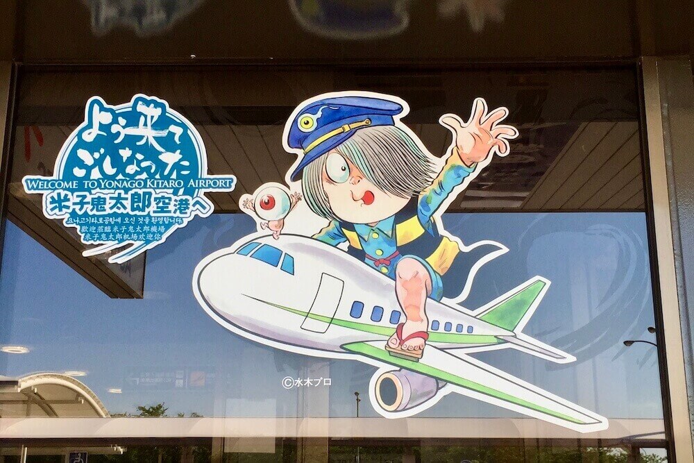 この鬼太郎は空港のロゴになっており正面のガラスにも描かれています。