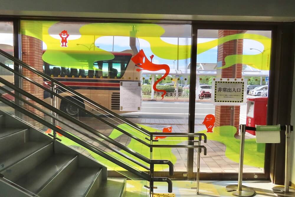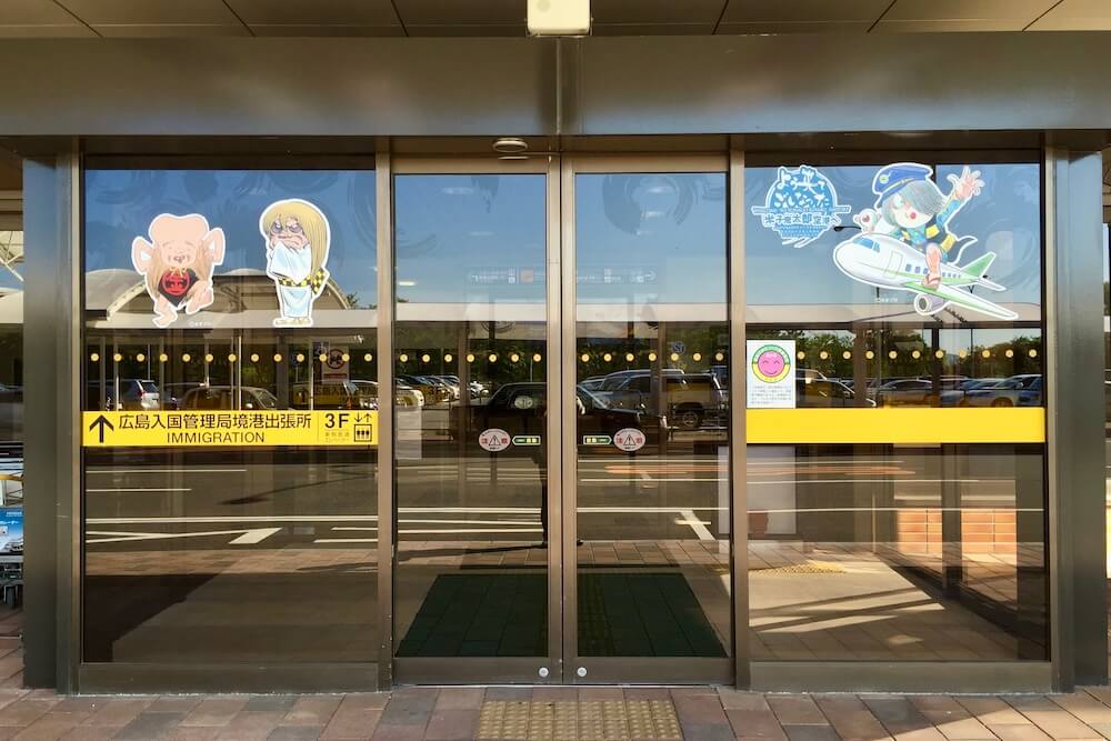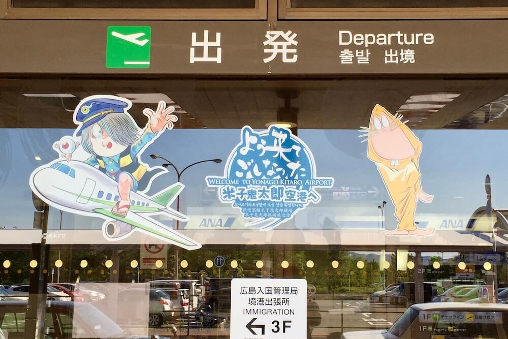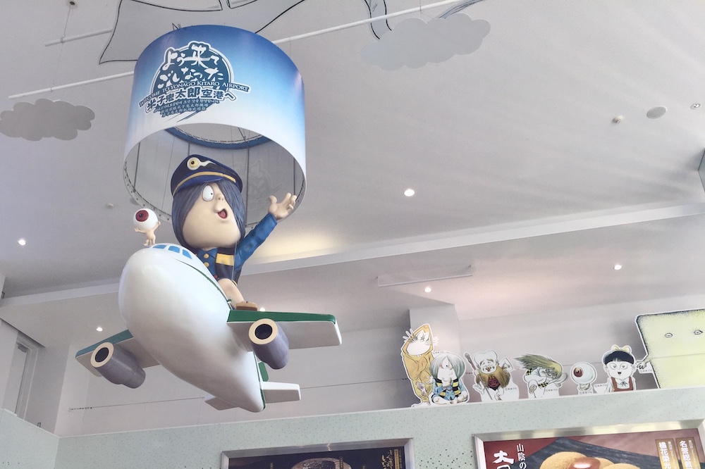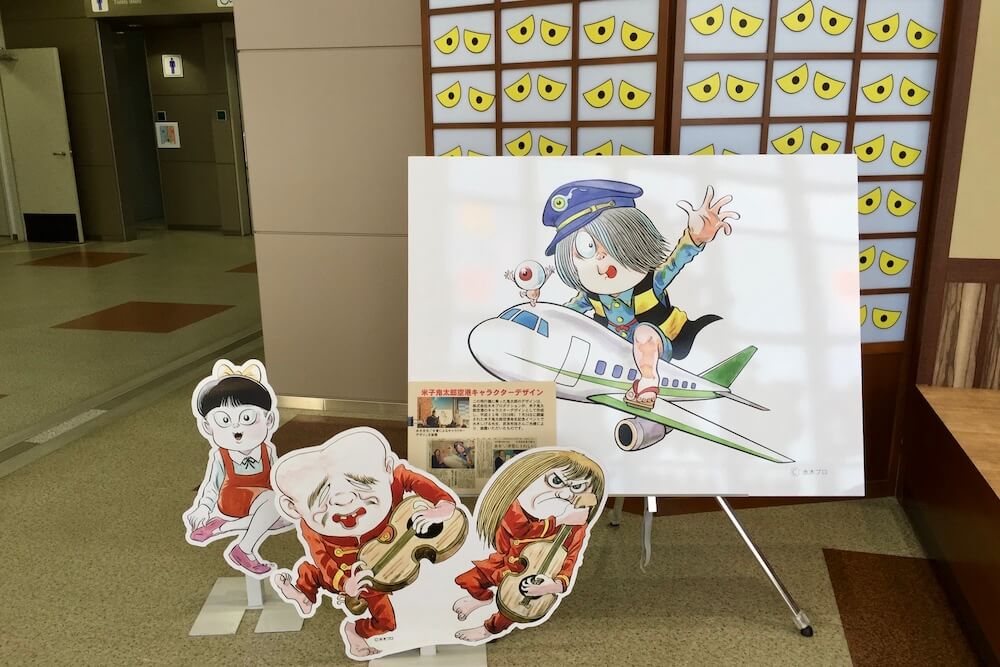 この鬼太郎は空港のロゴになっており正面のガラスにも描かれています。