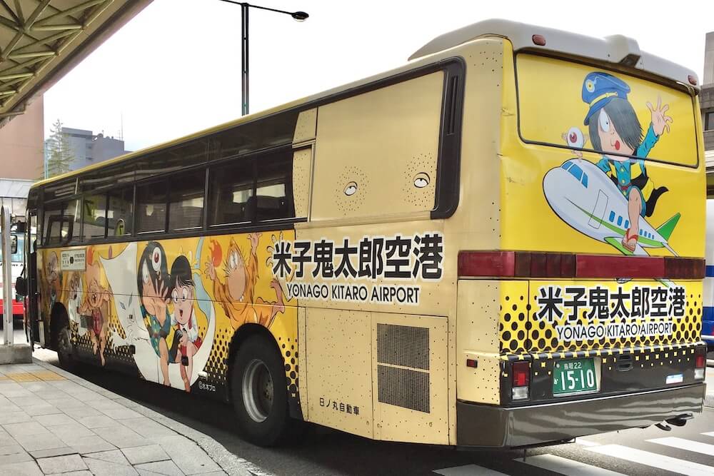 鬼太郎仕様の空港連絡バスが走っています。