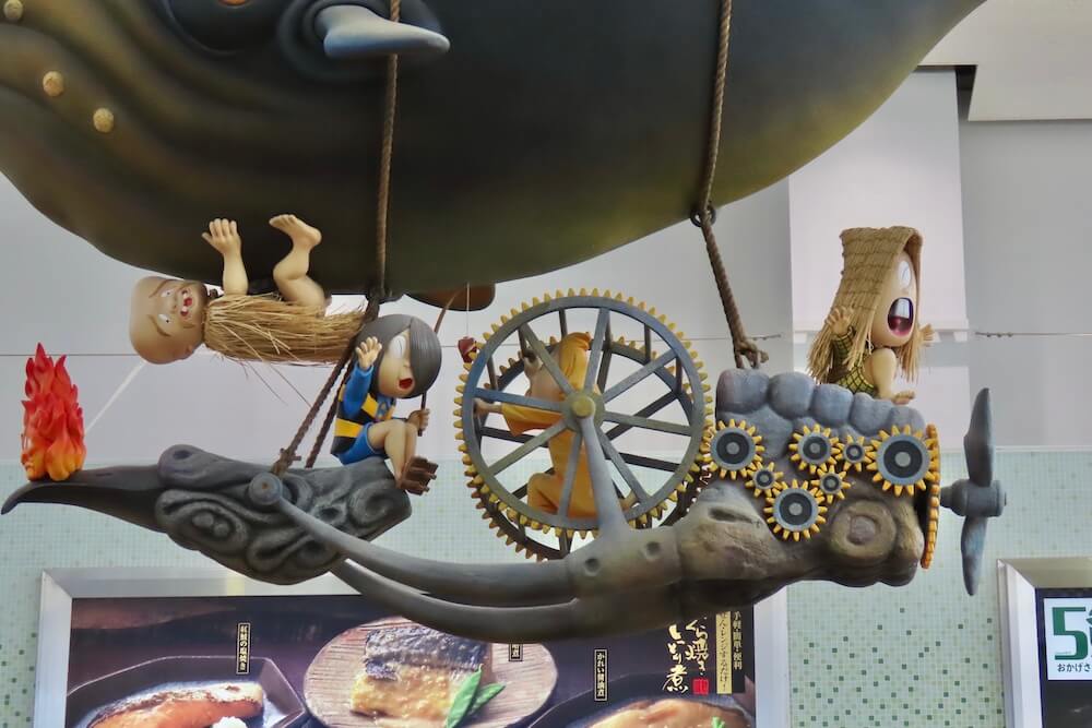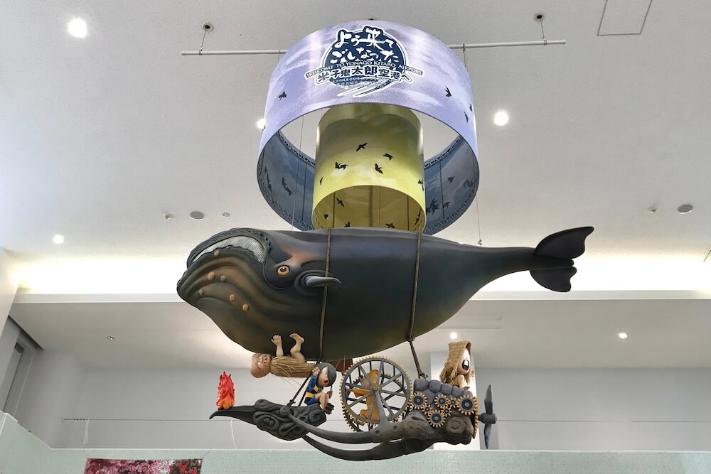 2階出発ロビーには、くじら飛行船の吊り下げオブジェがあります。