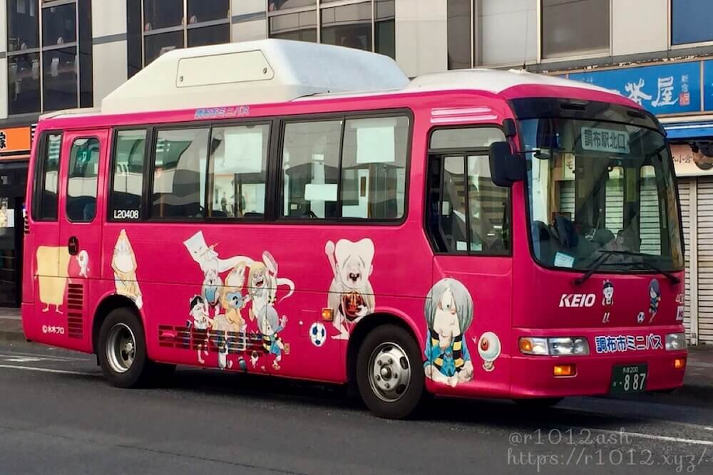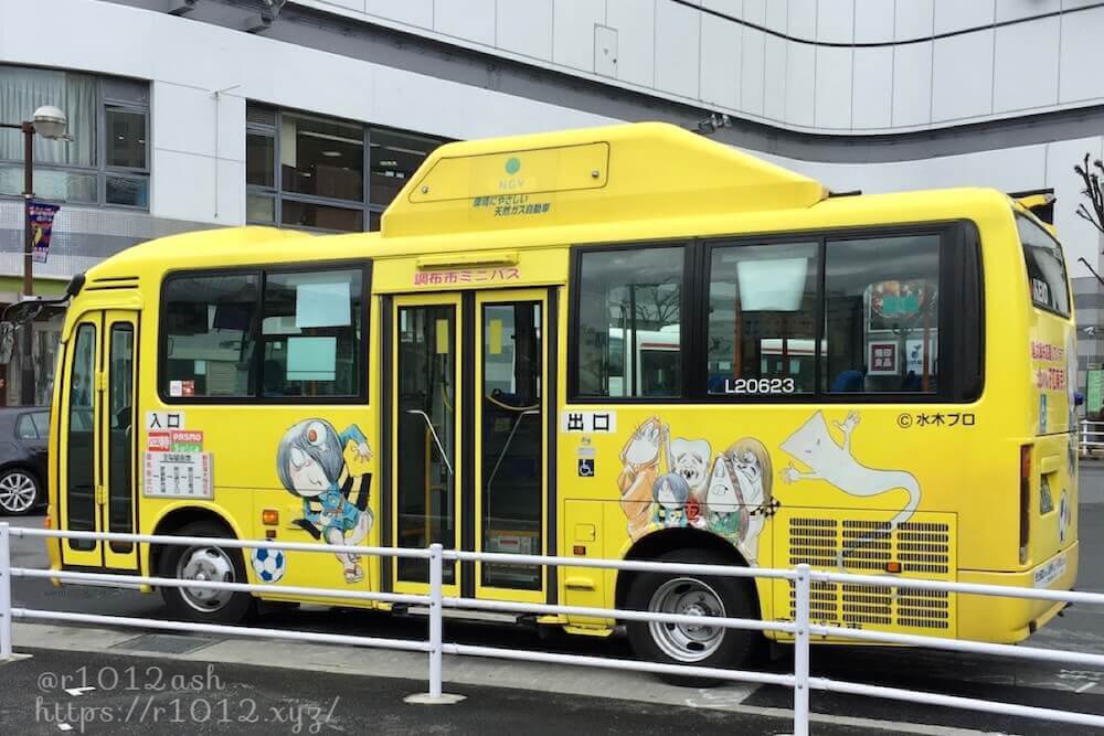調布市内を走るコミュニティバスの中には「ゲゲゲの鬼太郎」のラッピングバスが走っています。