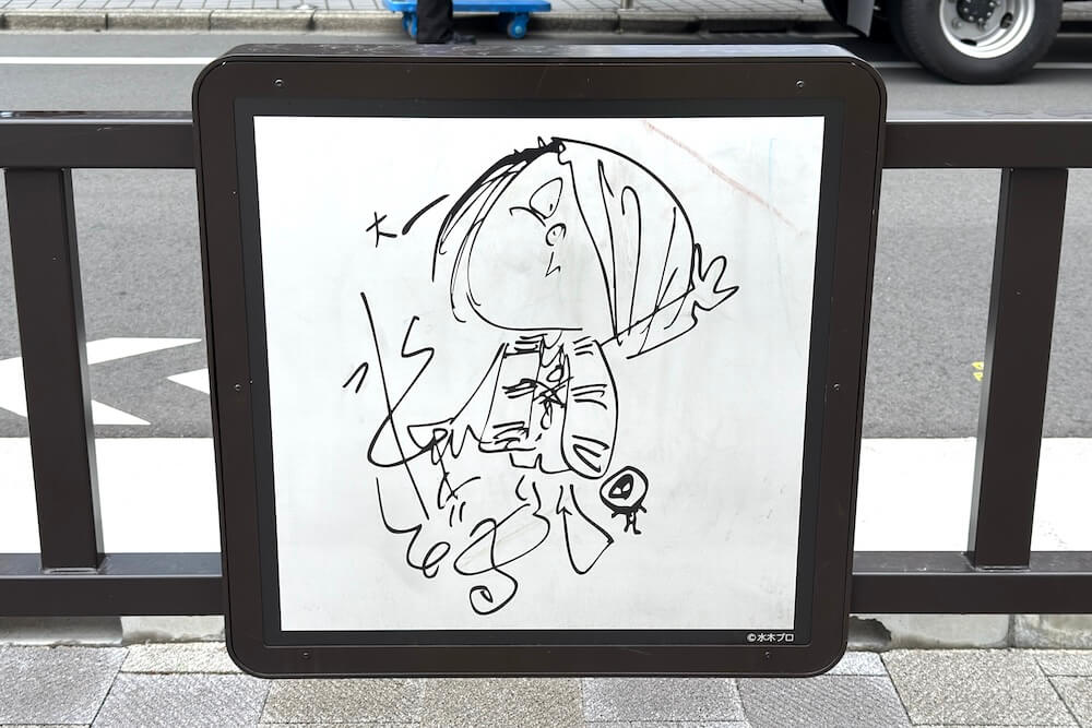 この像だけ背景パネルも作られていて名前の主張が激しいな、と思いましたがこれは水木漫画の特徴的なオノマトペを再現しているんですね。