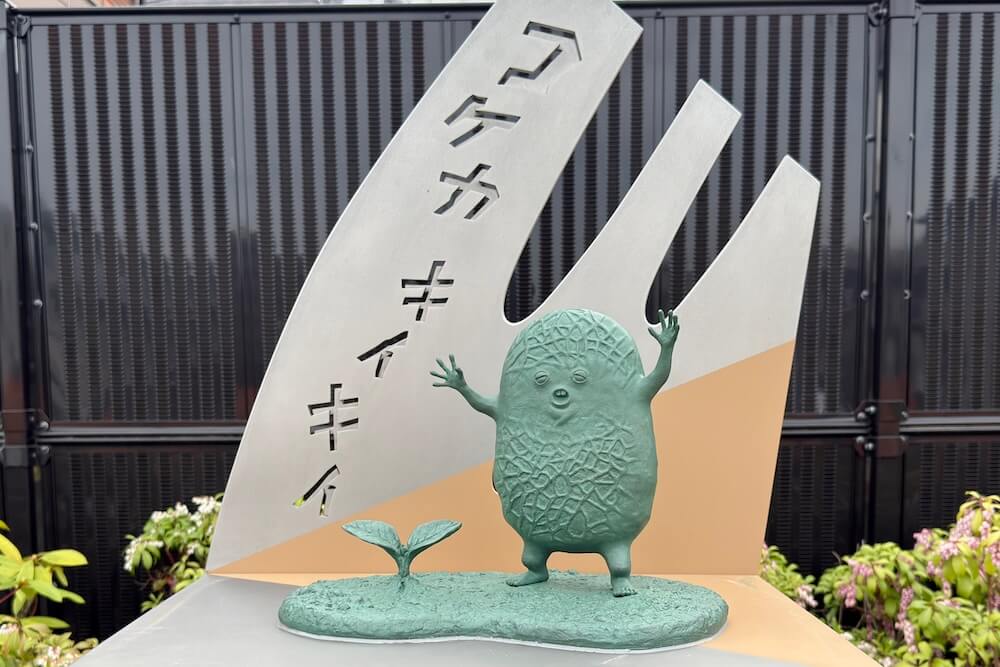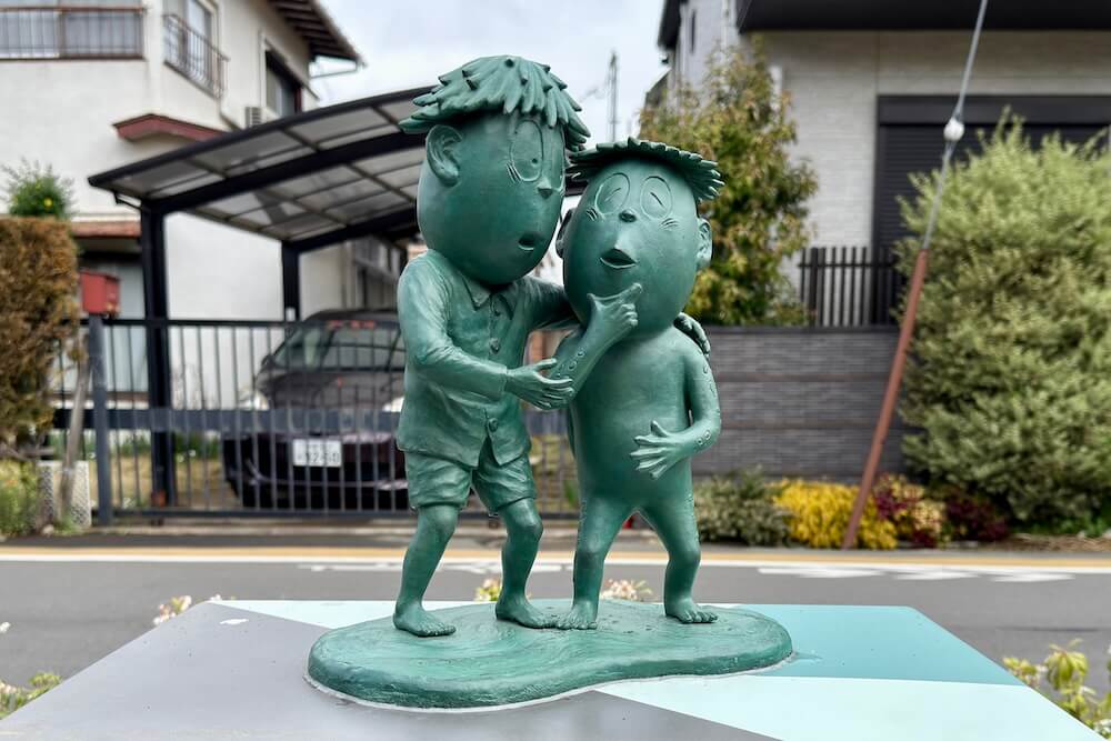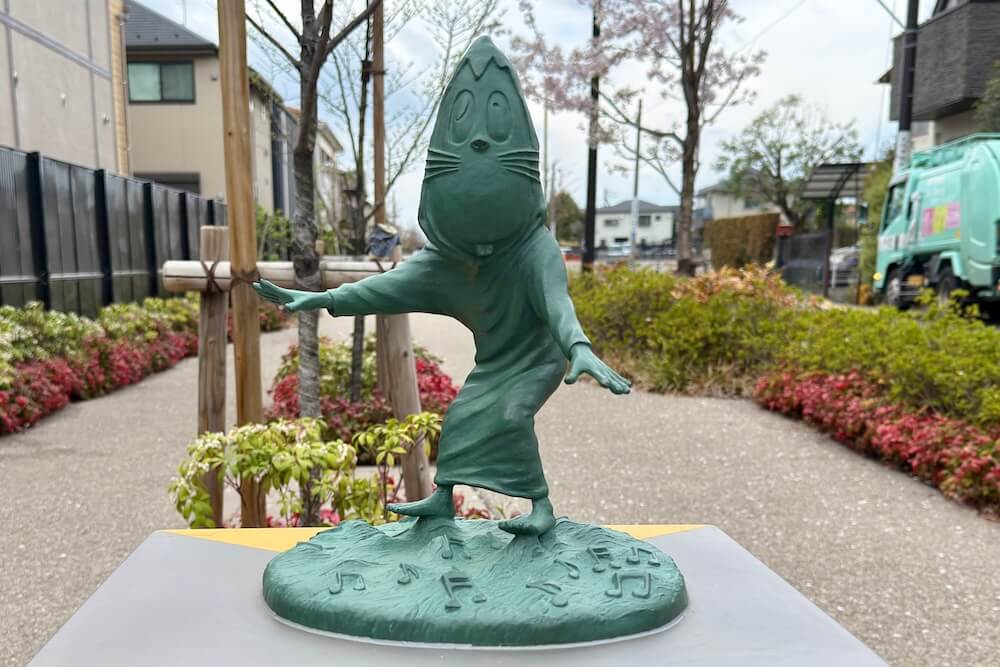 不思議な力で悪い妖怪たちを懲らしめるという『フーシギくん』のブロンズ像。
