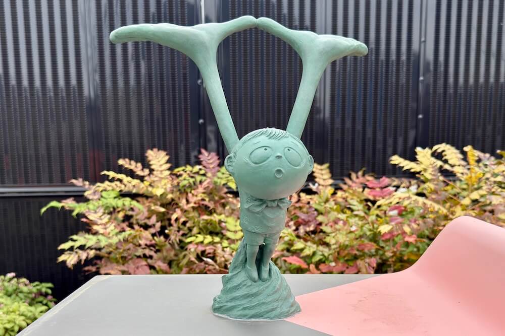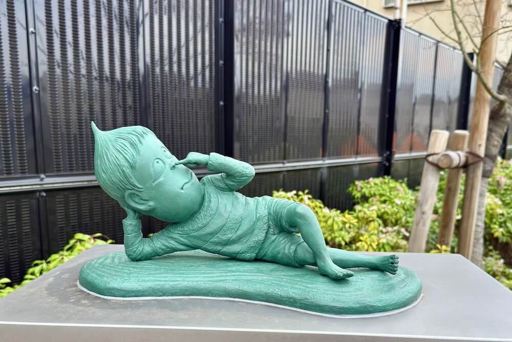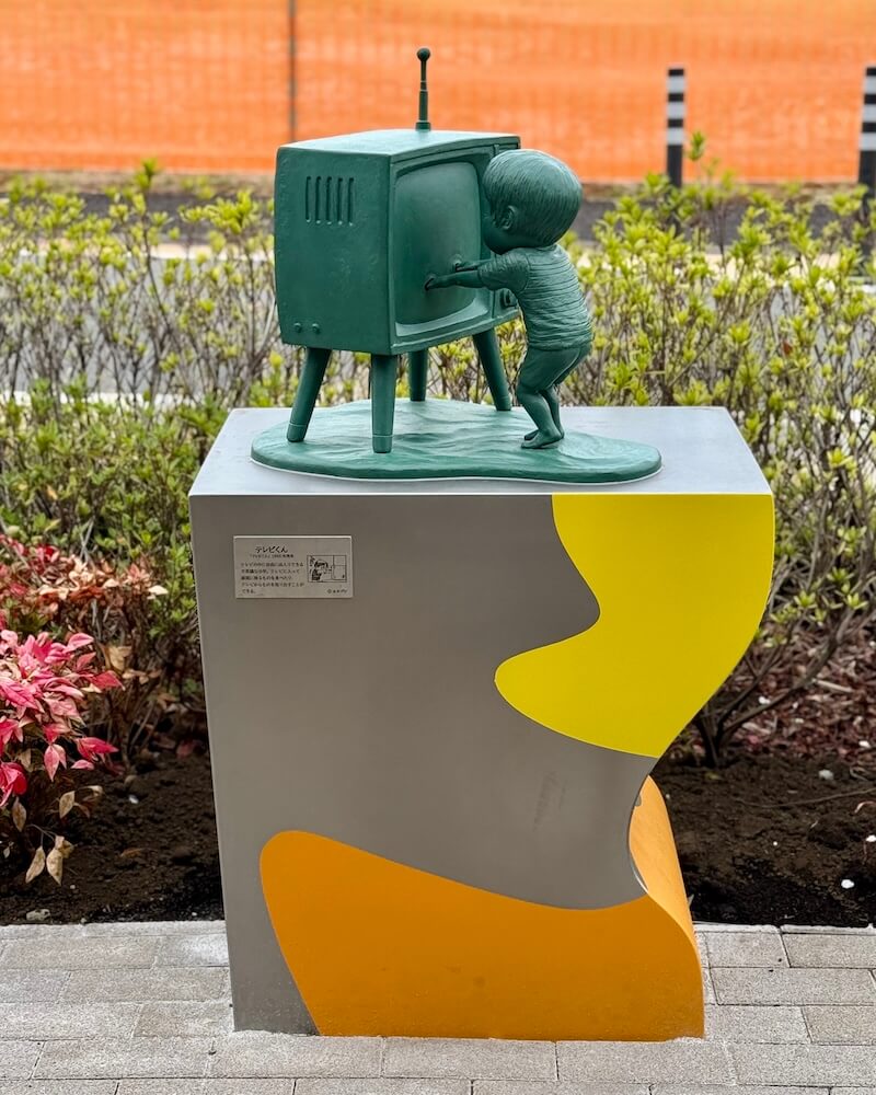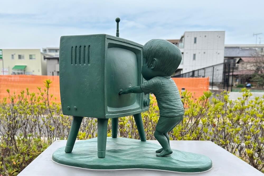 ここからは一般層には少しマイナーになる作品ですが、テレビの中に自由に出入りできる少年『テレビくん』のブロンズ像も。テレビに入るこのシーンがオブジェ化するのは新しいですね!
