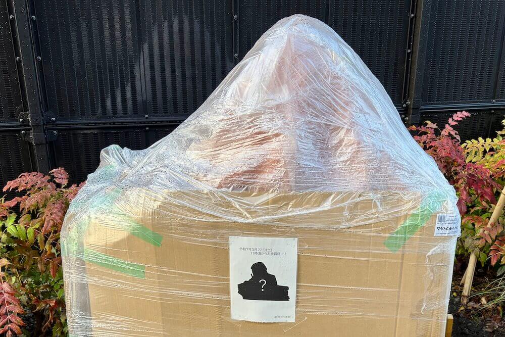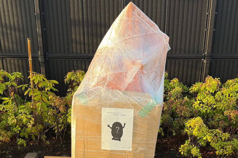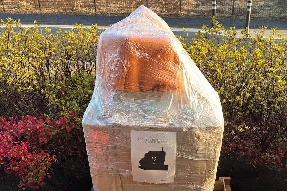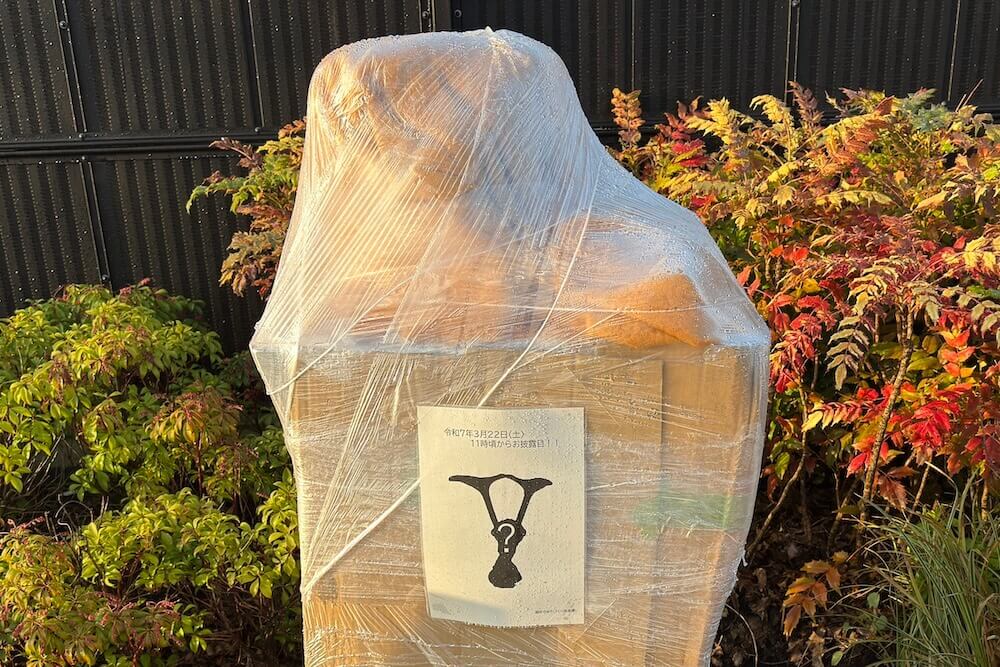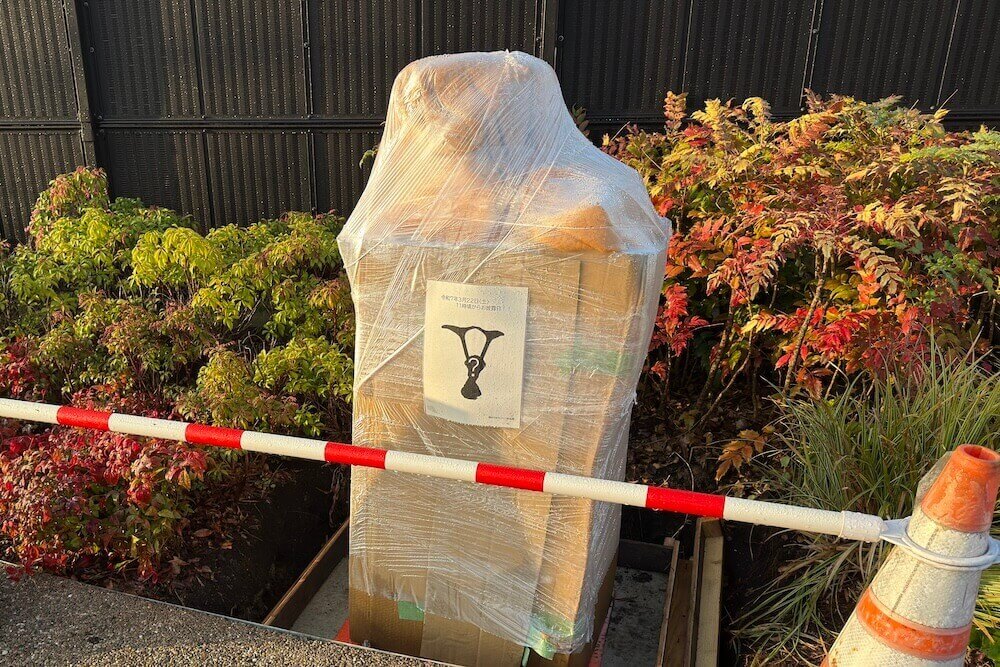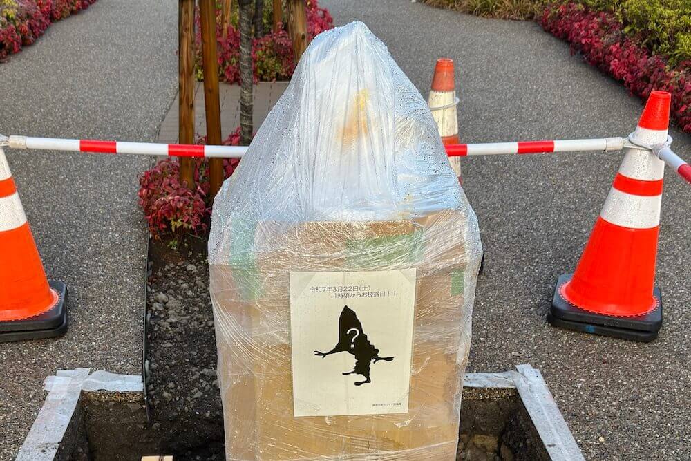 お披露目前のブロンズ像