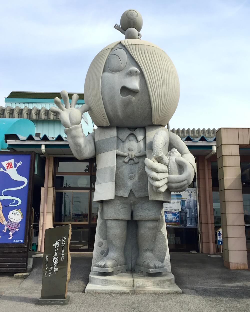「がいな」とは方言で「大きい」という意味です。石像横の文字は水木しげる先生直筆の字を石に彫ったものだそうです。