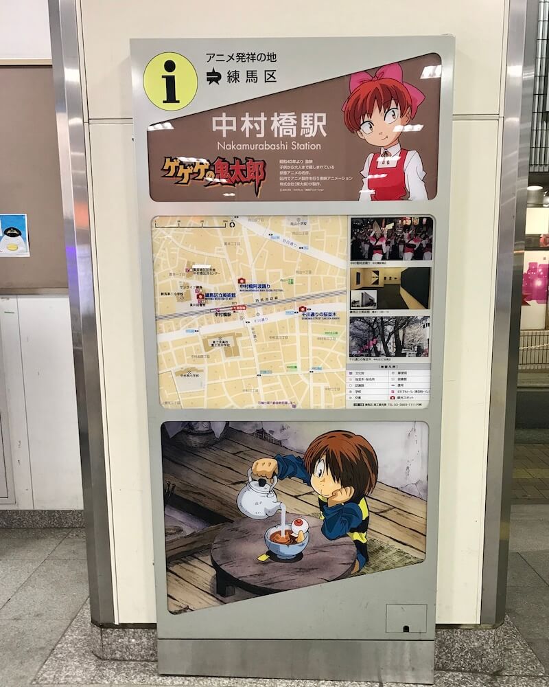 中村橋駅の観光案内板にいる鬼太郎 2018.03.27 練馬区は2007年から区内の駅に観光案内板を設置しています。 案内板には練馬区ゆかりのアニメキャラクターが描かれており、そのひとつ『中村橋駅』は「ゲゲゲの鬼太郎(5期)」が担当しています! 案内板は中村橋駅改札外、券売機の近くに設置されています。 練馬区由来のキャラクターというのは鬼太郎のアニメ制作をしている東映アニメーションが練馬区にあるからですね! 他の19駅にもアニメキャラクターがいるので機会があれば他の駅にも行ってみたいですね〜 所在地:東京都練馬区中村北4-2-1