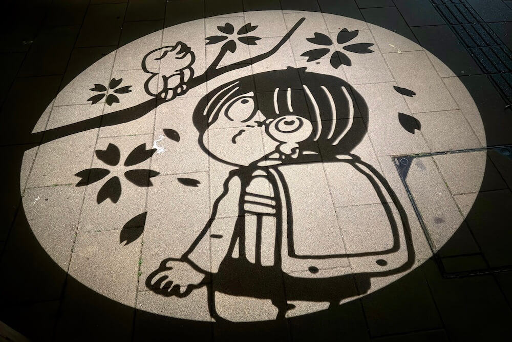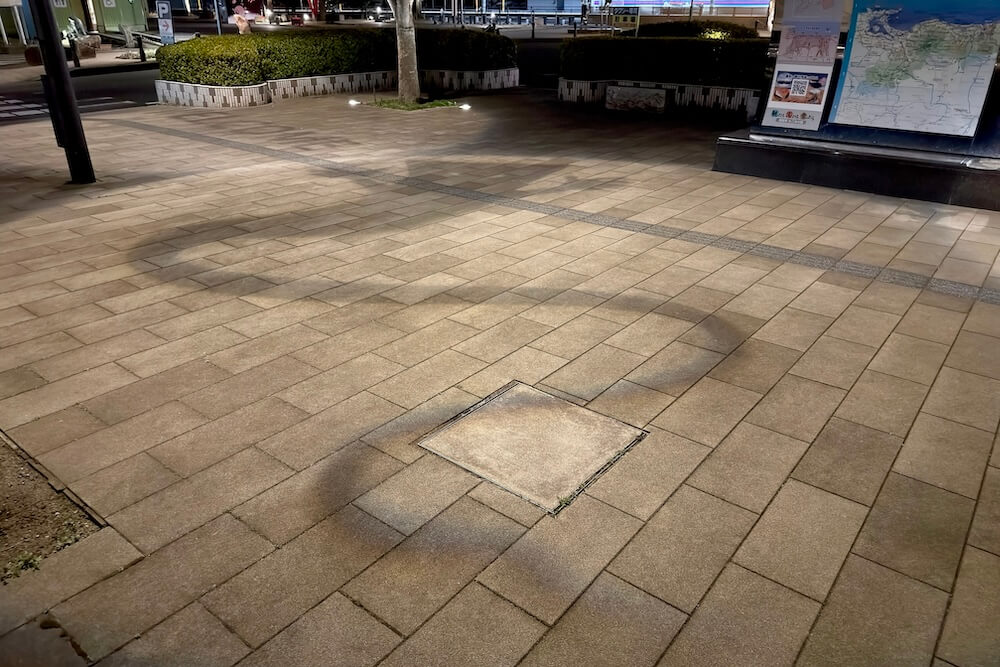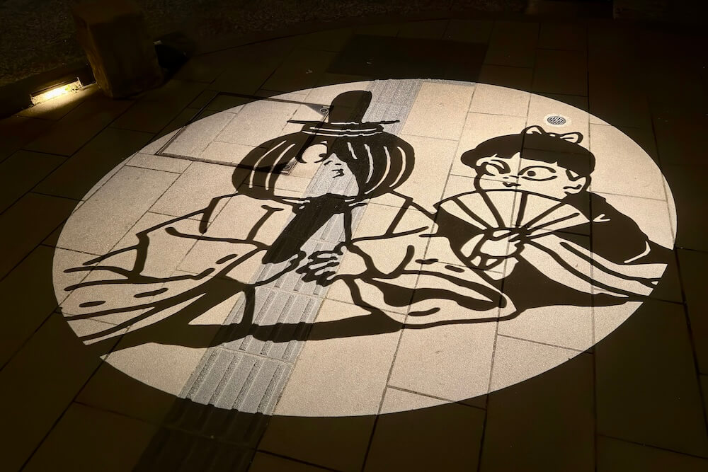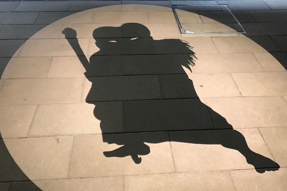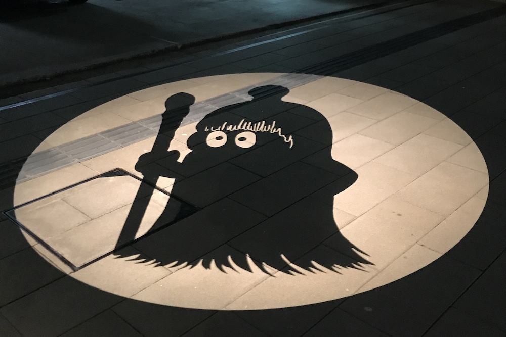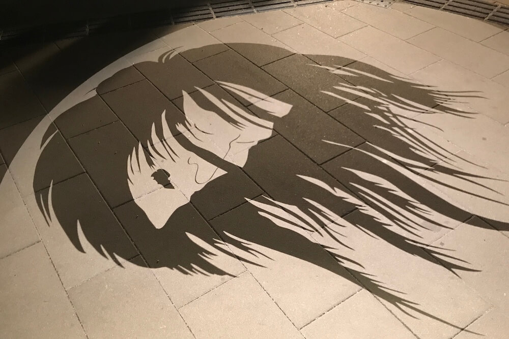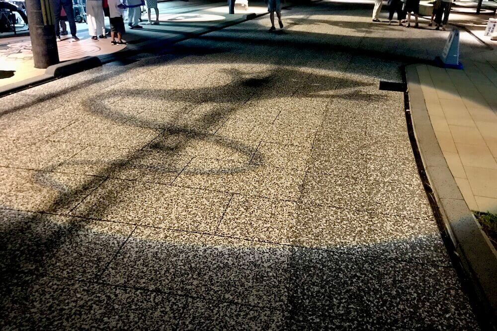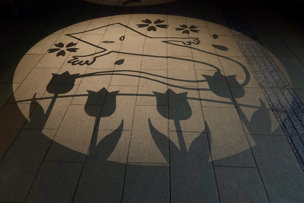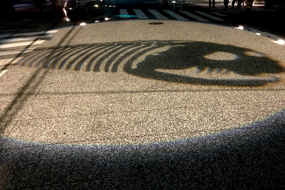 境港駅前ロータリーに投影される影絵。大型影絵ですが映し出されるのは歩道なので毎日見られます。
