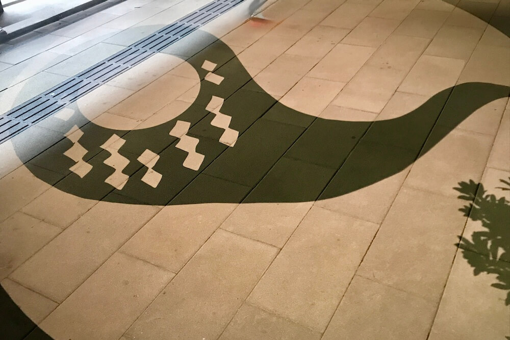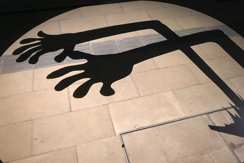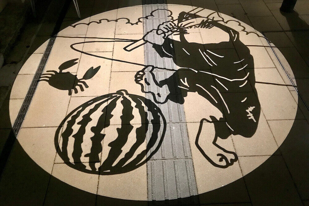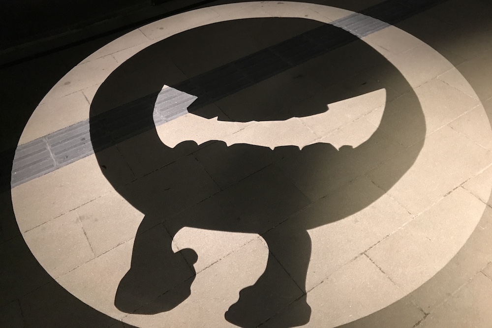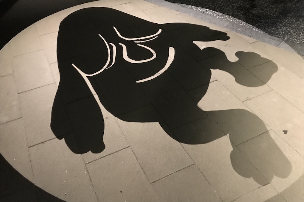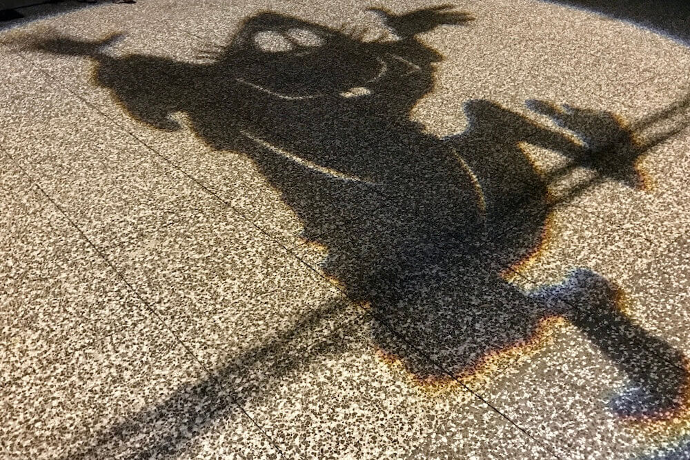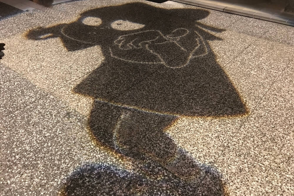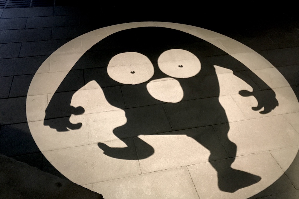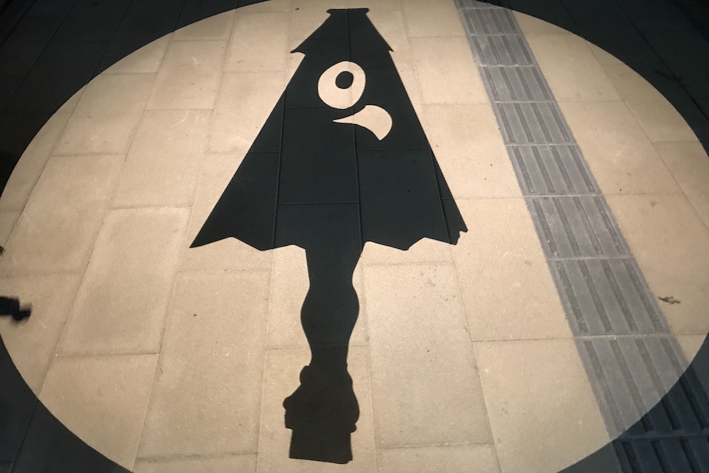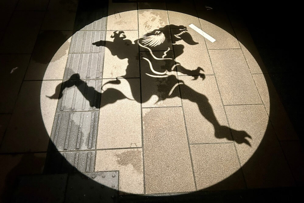境港駅前ロータリーに投影される影絵。大型影絵ですが映し出されるのは歩道なので毎日見られます。