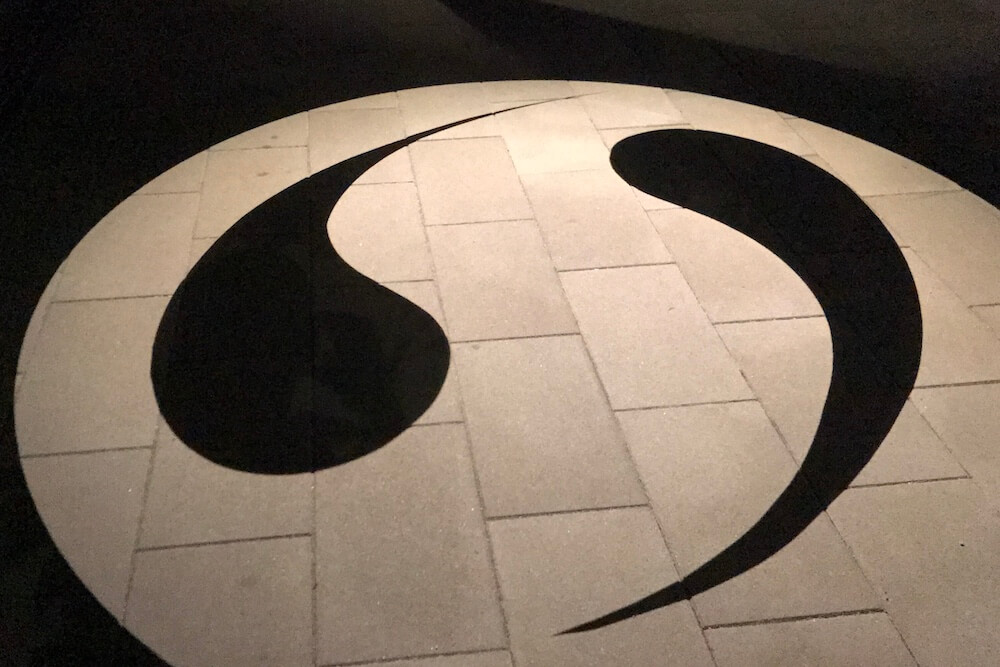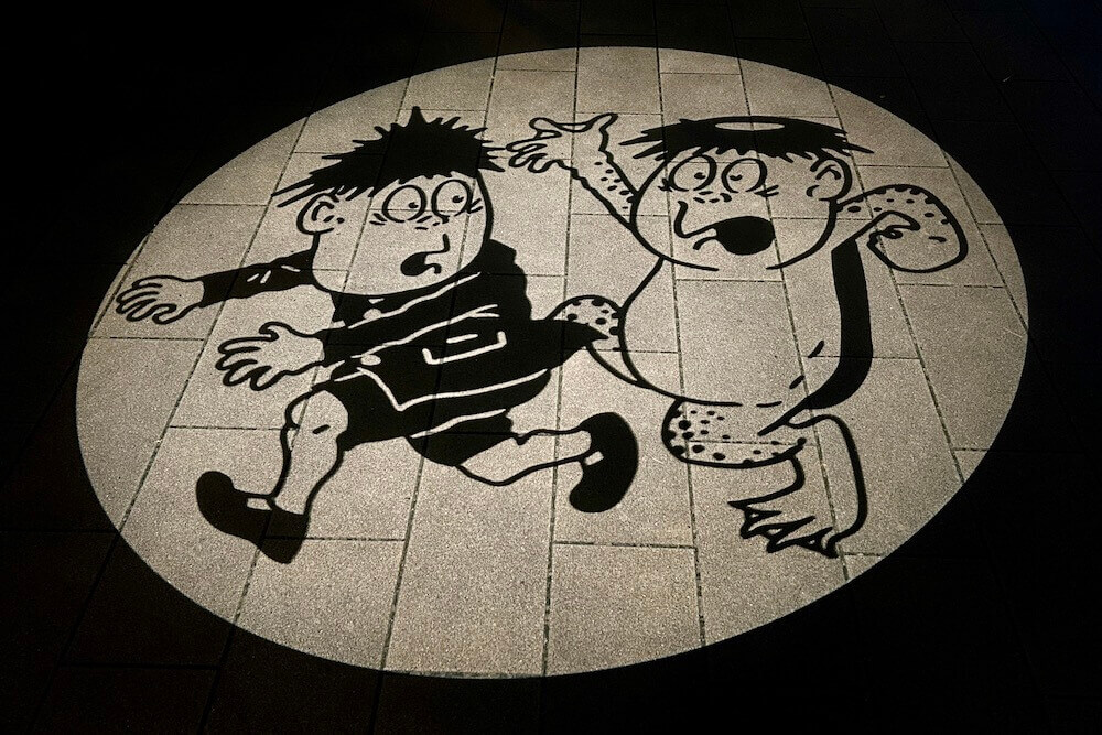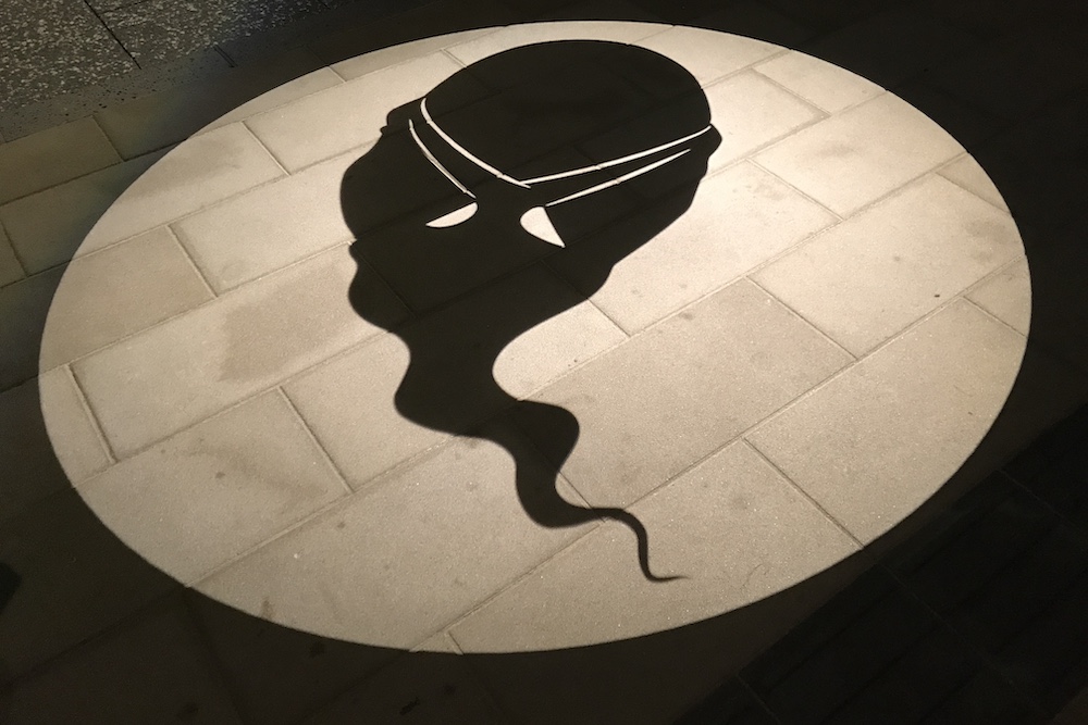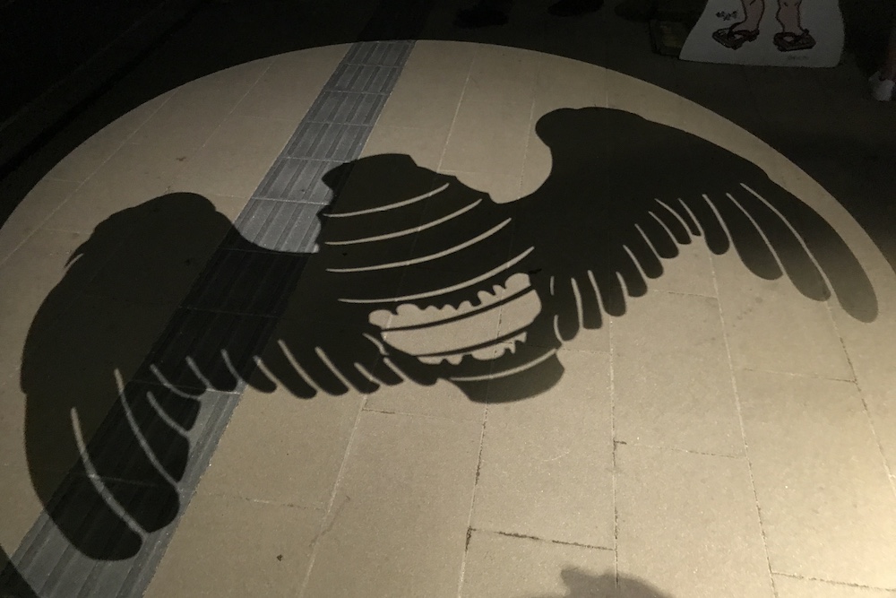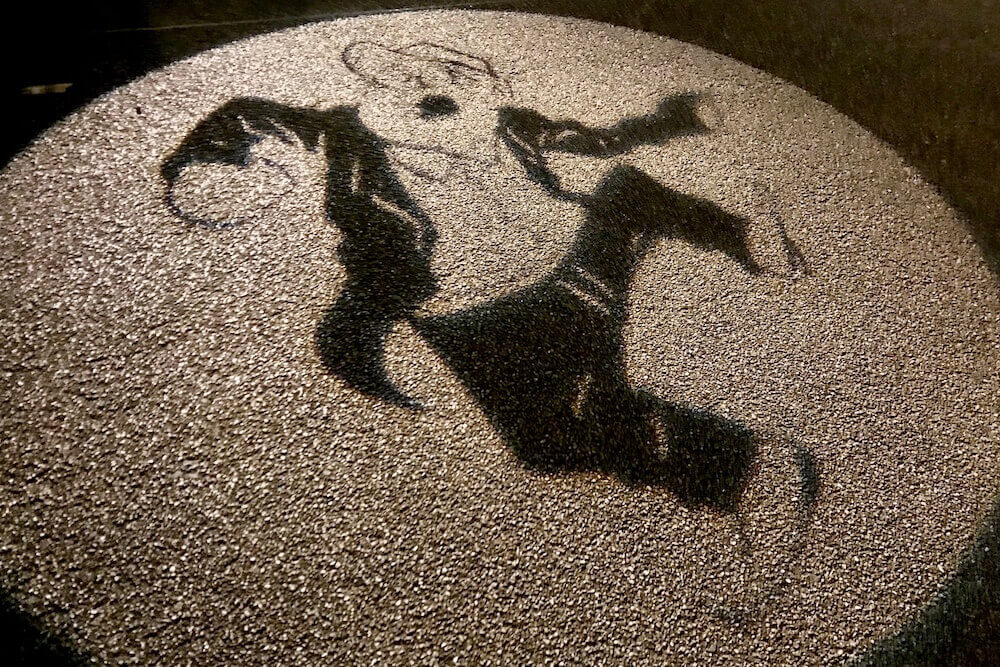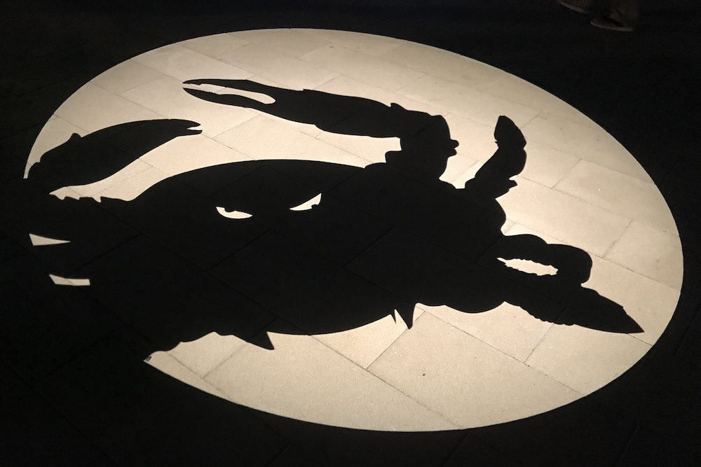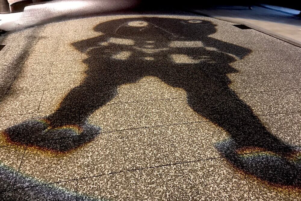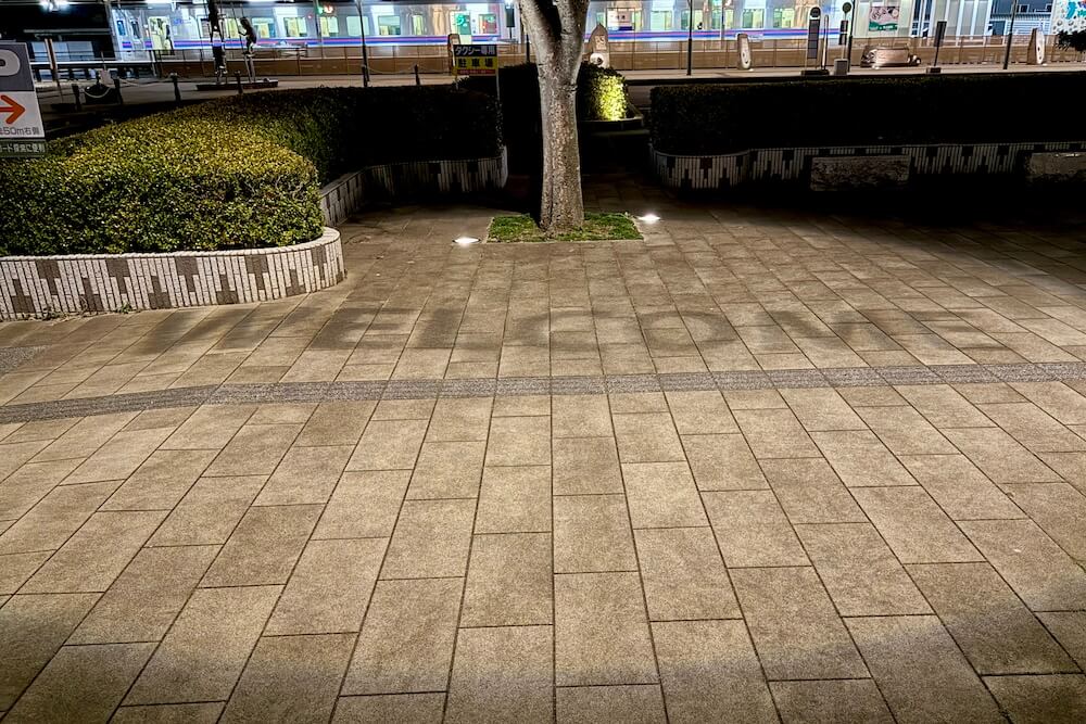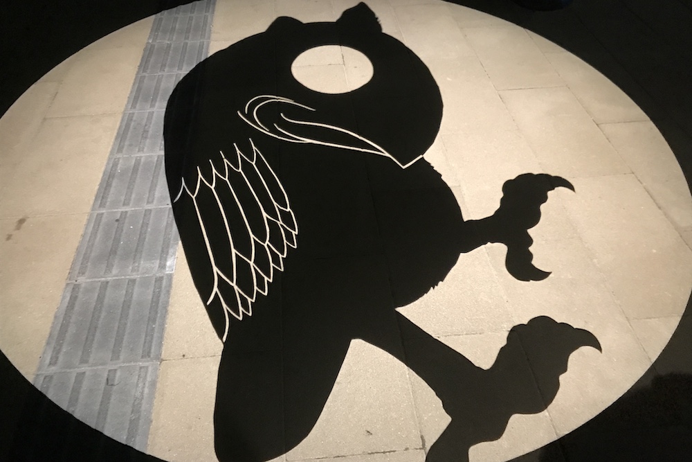 境港駅前ロータリーに投影される影絵。大型影絵ですが映し出されるのは歩道なので毎日見られます。