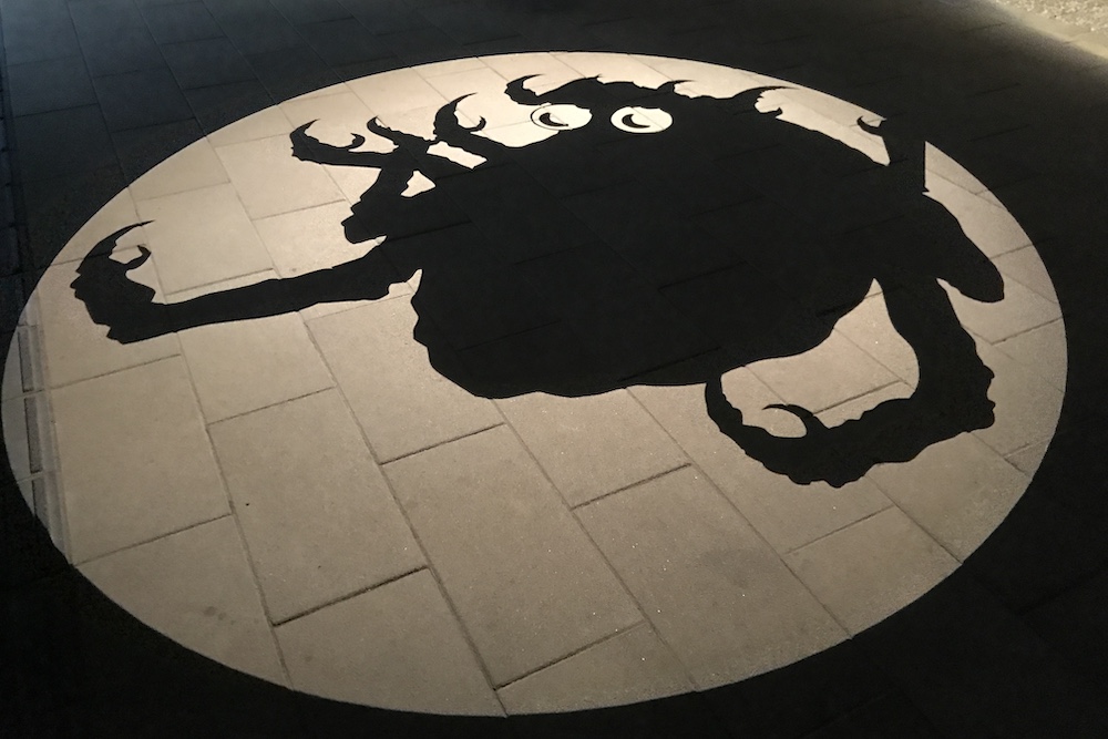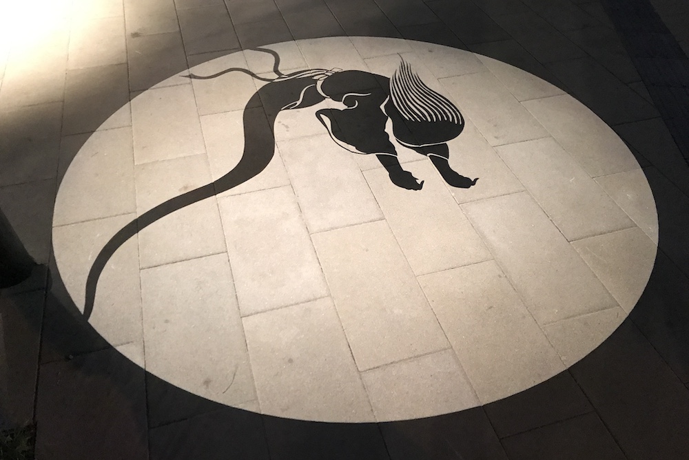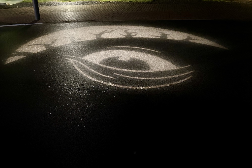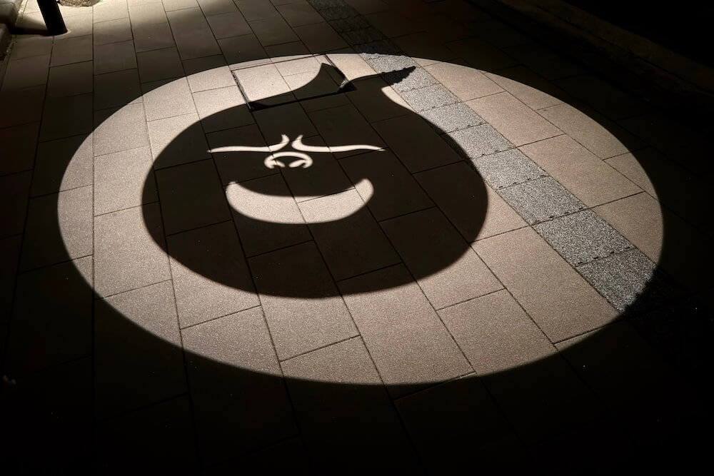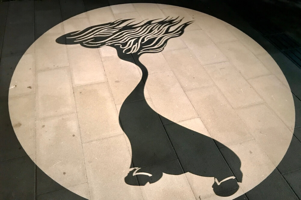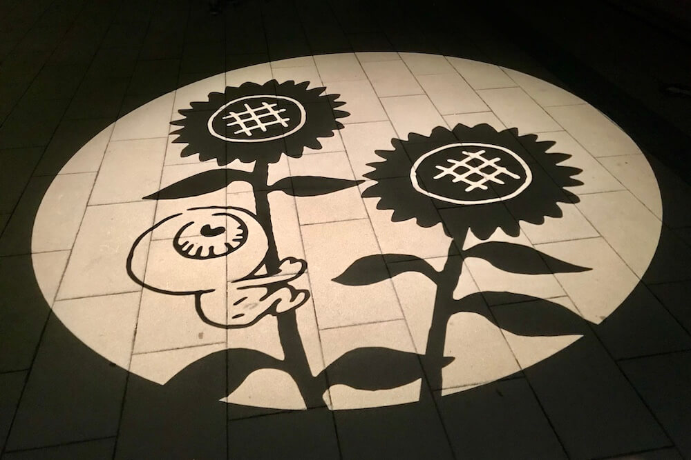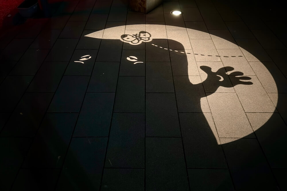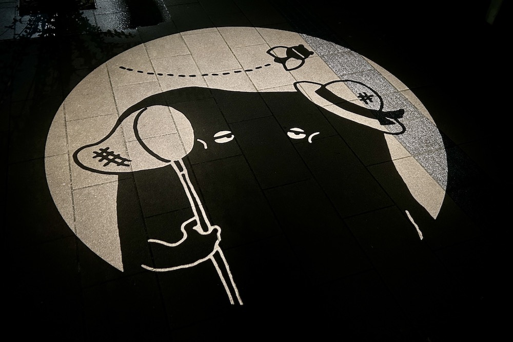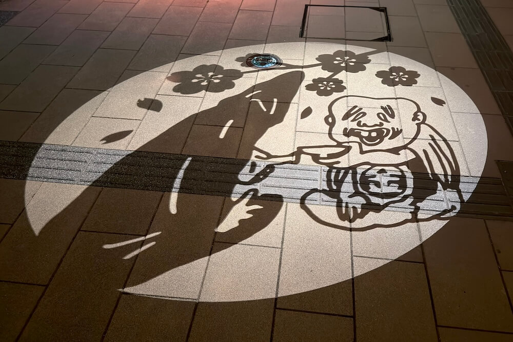 2018年12月からは季節に合わせた限定の影絵が登場しました。通常歩道影絵の一部が季節の絵に切り替わって映し出されます。