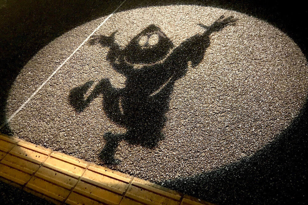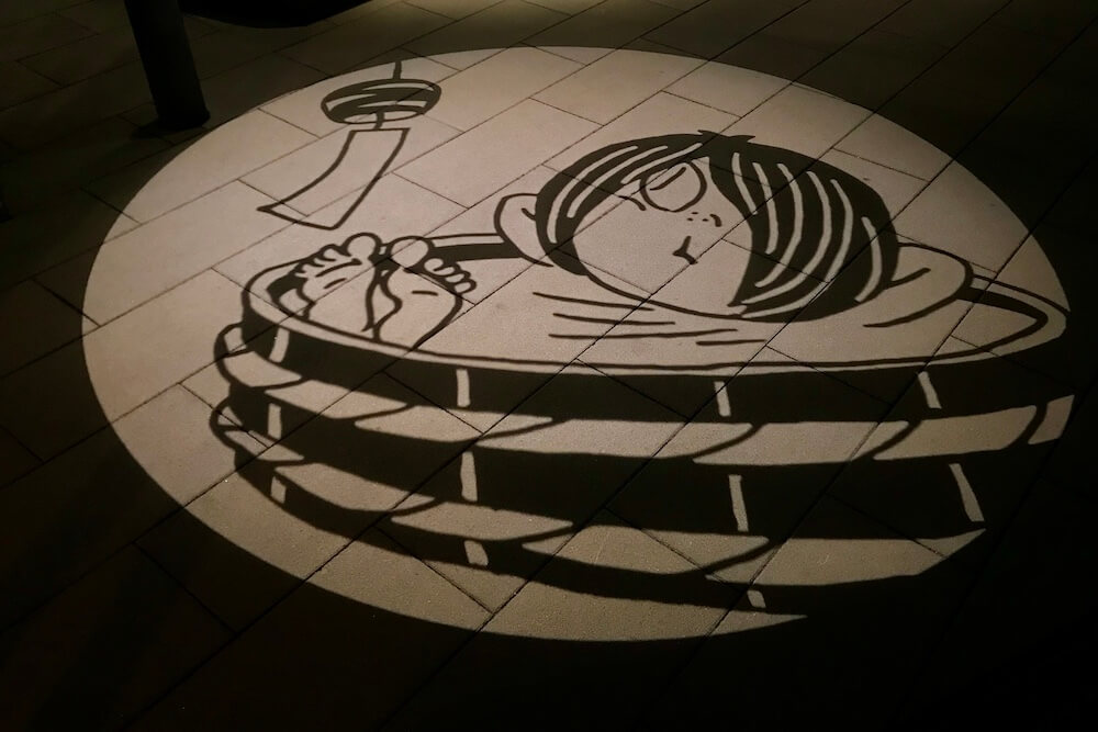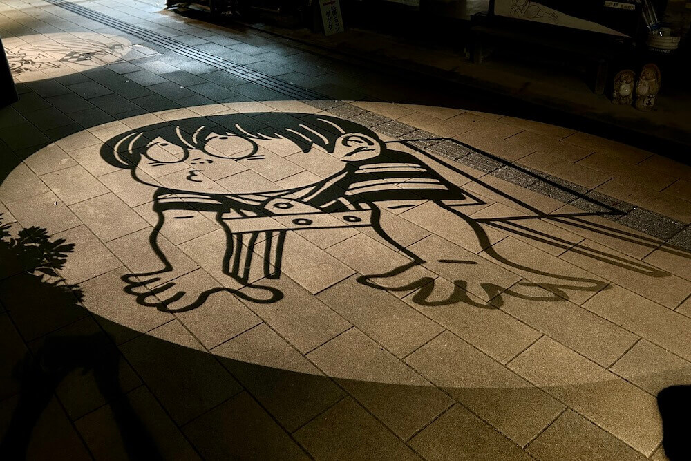 水木しげるロード内、歩道エリアに映し出される影絵です。全36箇所(たぶん)