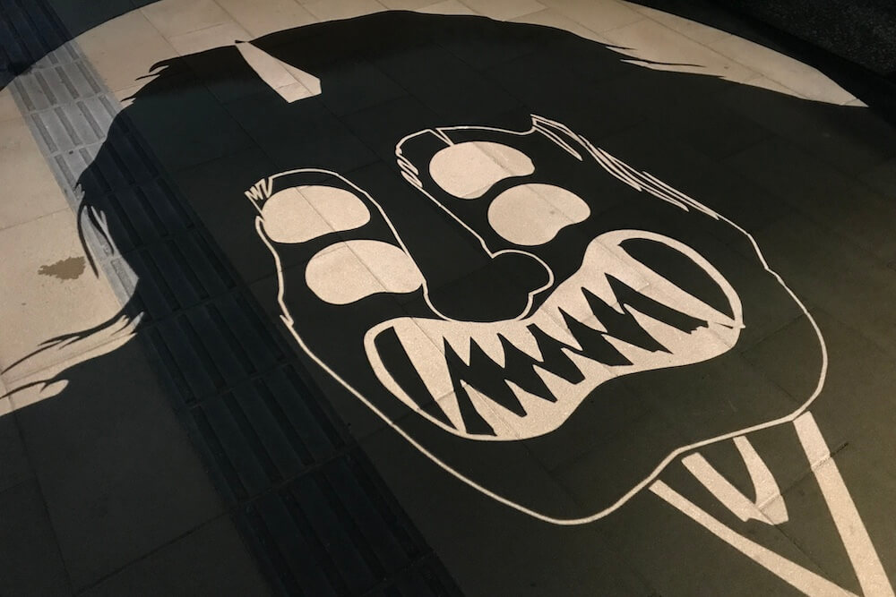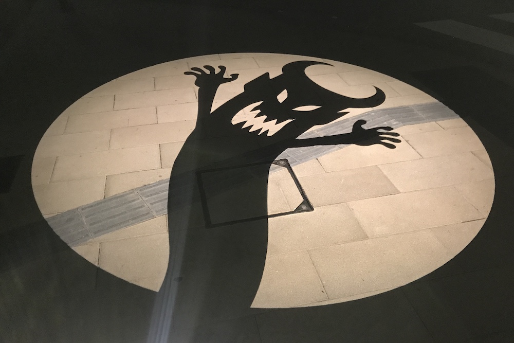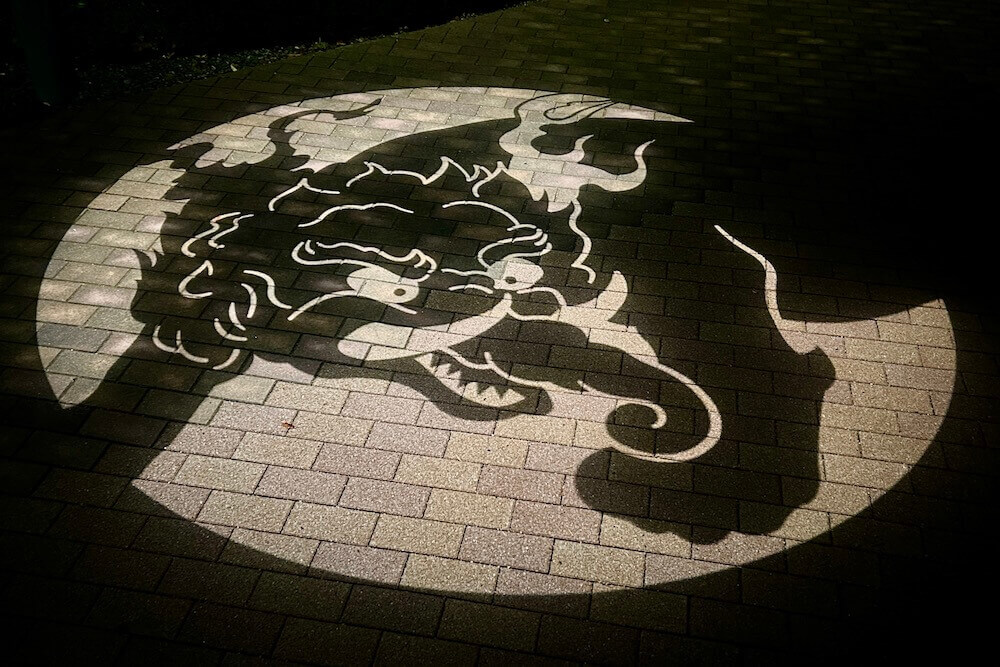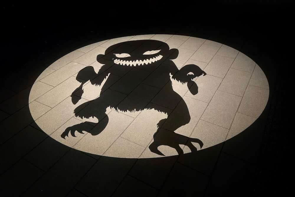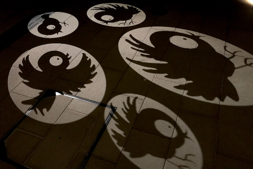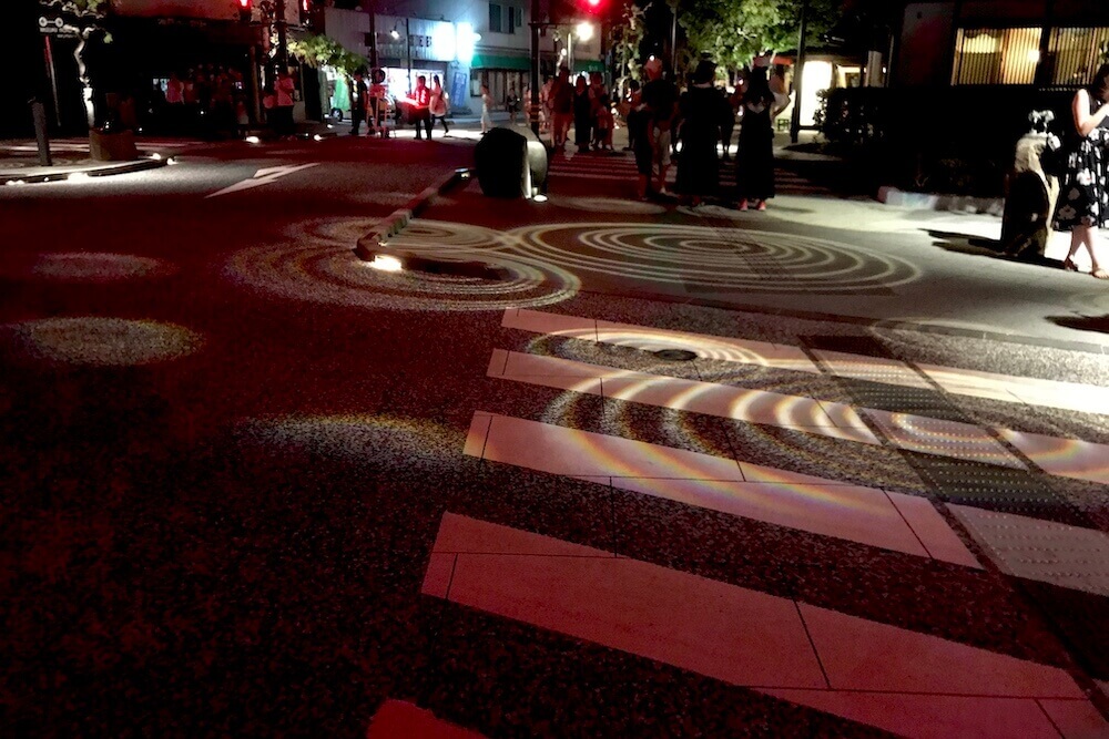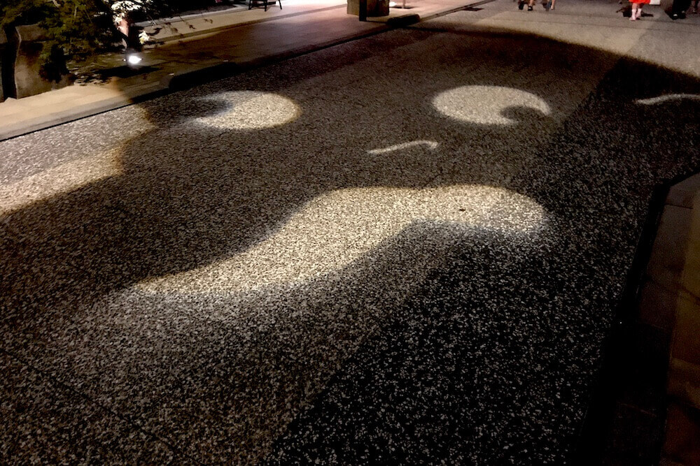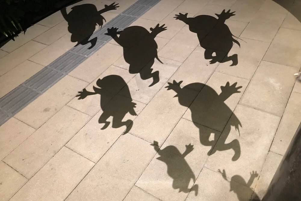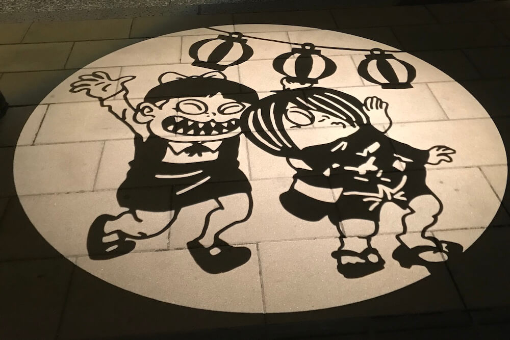 『妖怪ナイトウォーク』イベントなどの歩行者天国に限って車道に映し出される大型の影絵です。