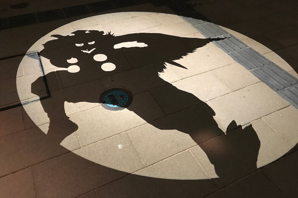 日没になると水木しげるロードに現れる妖怪影絵。2018年の水木しげるロードリニューアルに合わせて登場し、期間限定絵や新しい影絵も年々増えていっています!