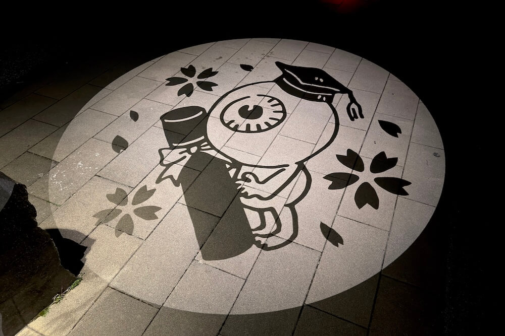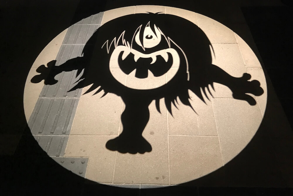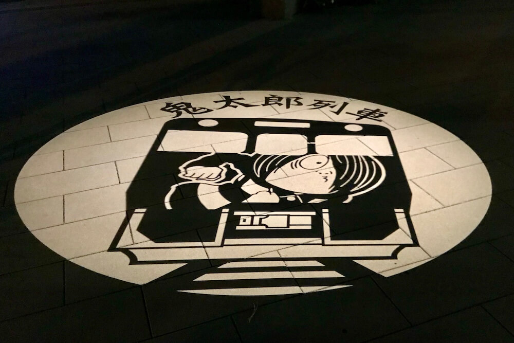 こちらは2016年、境港駅前に開業したホテルを期に夜の観光スポットとして始まったライトアップの一部で登場したそうです。水木しげる記念館前に照らされました。
