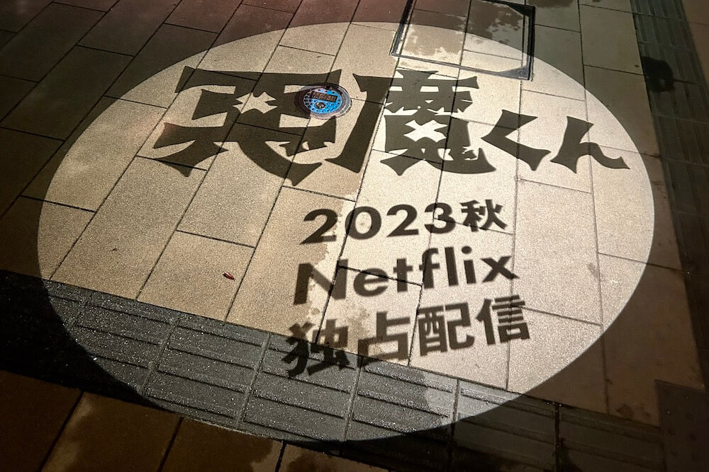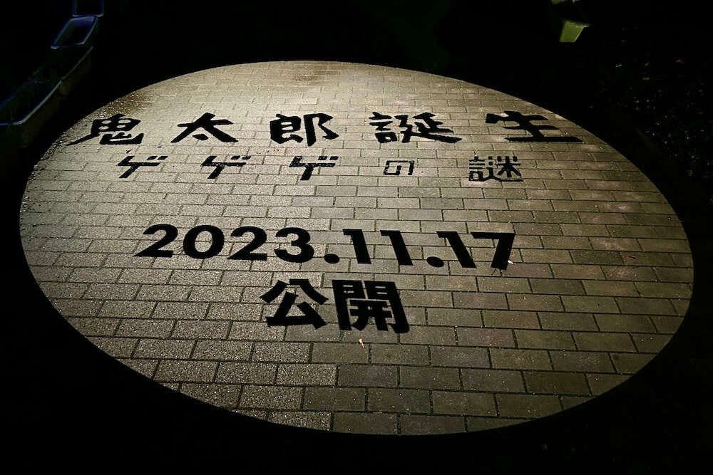 2020年8月、水木しげる記念館前の道に出現!車両交通規制を伴うので限定日のみ投影されます。