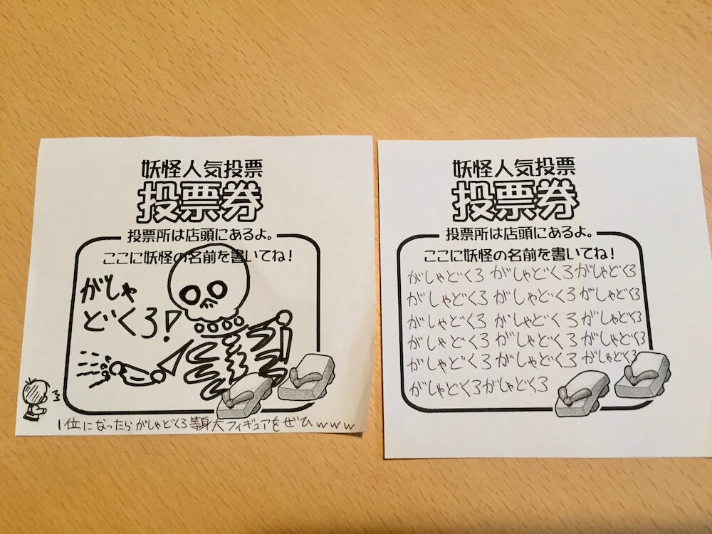 お店で買い物もしくは飲食で投票権が1枚貰えて投票できます。