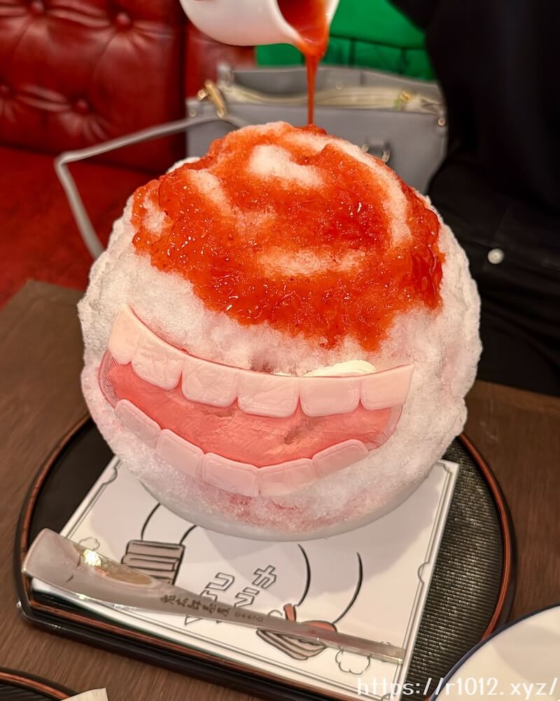 シロップはいちご、抹茶、桃、マンゴーから選べて今回はいちごにしました。結果…